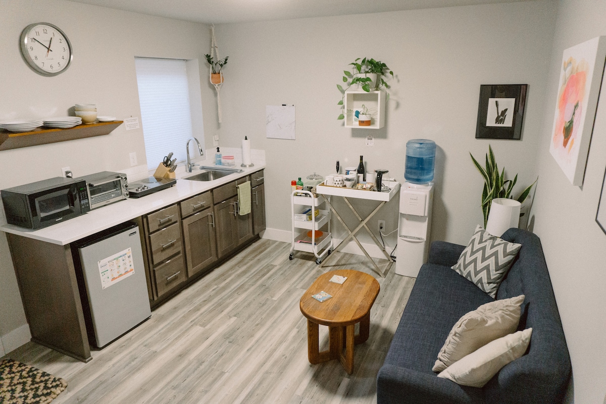 Diseñada para sentirse como una pequeña posada europea, esta habitación única ofrece todo lo que necesita para una estancia cómoda. Es compacto pero completo, con baño privado, microondas/nevera y Keurig. Disfruta de tu café de la mañana en una gran terraza privada, solo tienes que desplegar el toldo si el tiempo cambia. En un barrio peatonal cerca del hermoso parque Mount Tabor, estás a unos pasos de una cafetería local, una pizzería y comida tailandesa. Un viaje de cinco minutos en coche te lleva al corazón de Division o Hawthorne para la experiencia completa de Portland.