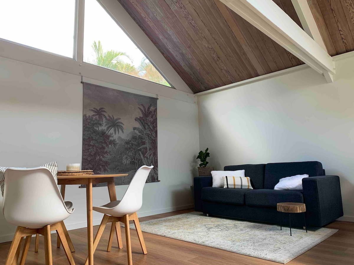 Relax in our private air conditioned guest studio, perfect for singles and couples looking for a coastal get away. The studio has a separate entry and complete privacy. It is fully self-contained and is modern, bright and airy. The space also includes your own private deck with views to the glasshouse mountains. The studio has high speed WiFi and smart TV with access to any of your apps. It has a Nespresso coffee machine, breakfast facilities and access to a shared swimming pool.