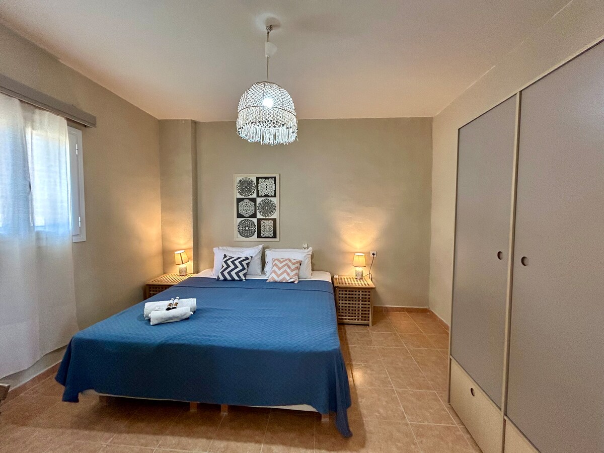 Departamento de dos habitaciones N.11 con desayuno. Ubicado en una pequeña cala sobre la playa de Trapezaki con vistas panorámicas al mar vírgenes, donde los únicos sonidos son el ritmo de las olas y la embriagadora canción de las cigarras, nuestra familia y equipo te dan la bienvenida a “un trozo de paraíso”. Ocho apartamentos repartidos en cuatro edificios, ubicados en exuberantes jardines; césped bellamente cuidado, árboles frutales, palmeras y una abundancia de flores, el telón de fondo perfecto de esta joya mediterránea.