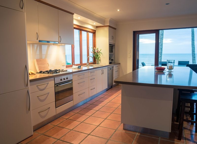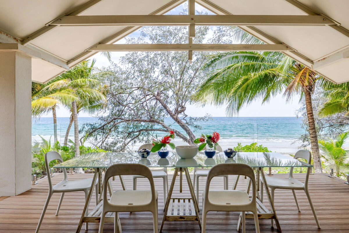 Tropical luxury house set among the ocean and rainforest. • Beachfront home • 3 Bedroom, 2.5 bathroom • 1 king, 1 king split, 1 queen • 15 minute drive to Port Douglas cafes, restaurants and boutiques • Air conditioned • Indoor and outdoor dining area with BBQ • Heated private pool • Full kitchen • Ocean and mountain views • All amenities provided including pool towels • Stocked pantry • Cafe and pod coffee machine • Smart TV • Free tour booking service
