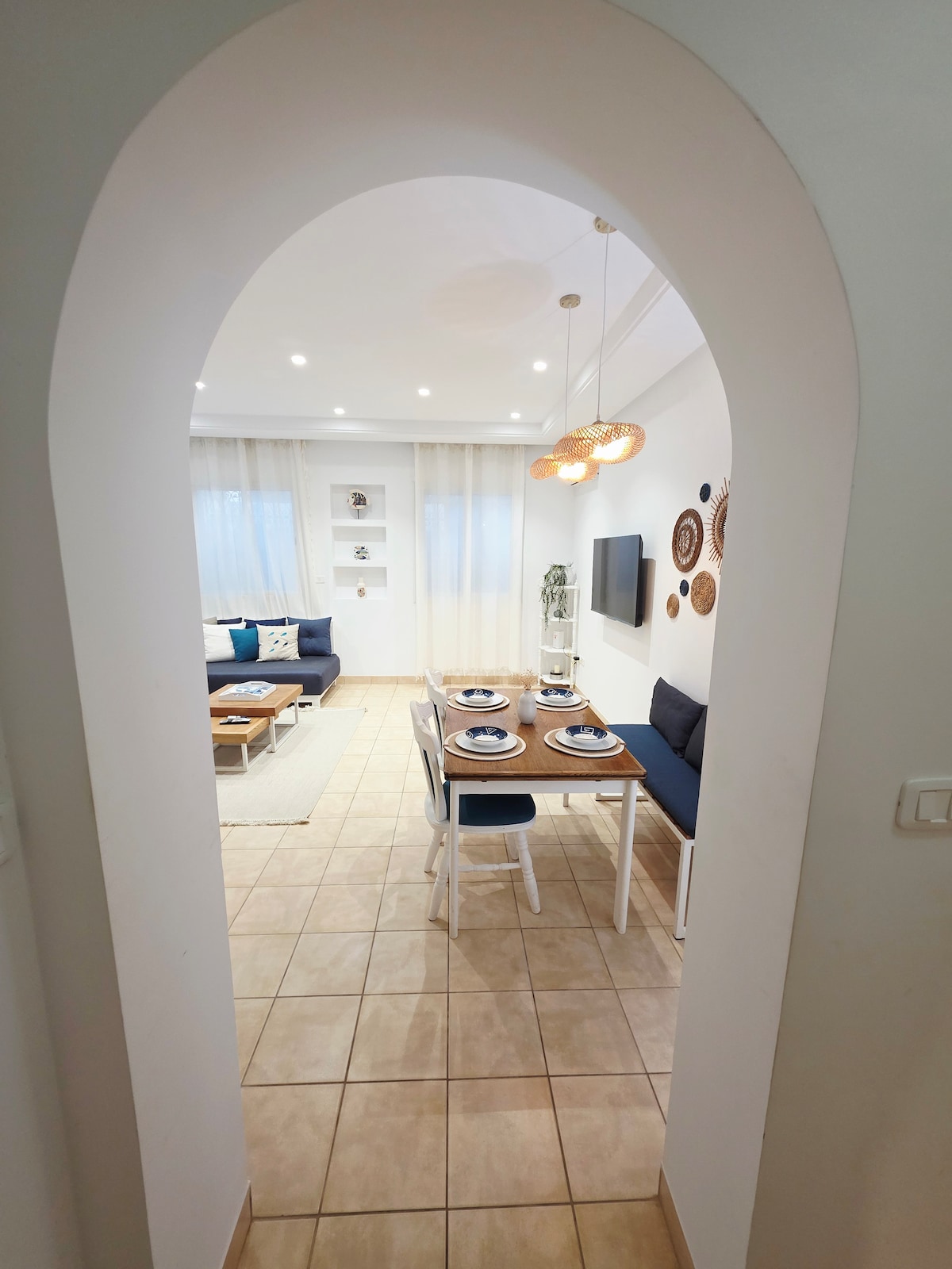 Relájese en este estudio tranquilo y elegante con impresionantes vistas al mar de Maamoura. Ideal para una estancia relajante, ofrece todas las comodidades necesarias. *Habitación acogedora: Cama cómoda y mobiliario refinado. *Cocina equipada: Todo lo necesario para cocinar fácilmente. *Salón moderno: TV, WiFi y amplificador para un ambiente inmersivo. *Gran terraza: Ideal para admirar las vistas, disfrutar de una barbacoa o una noche agradable. Perfecto para una estadía en pareja, en familia o entre amigos