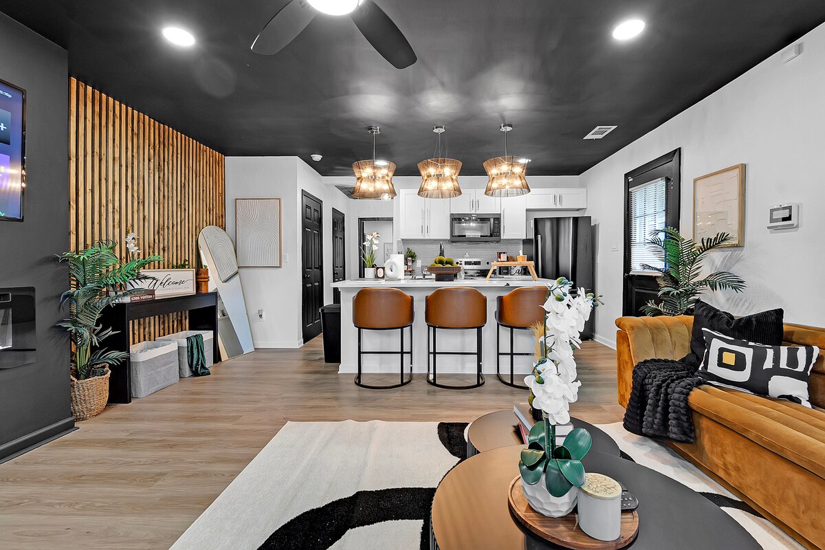 Disfruta de una experiencia elegante en esta casa céntrica, «Tropical Palms», llena de servicios de lujo similares a los de un hotel, chimenea eléctrica y una entretenida zona de bar. Servicios adicionales: - Colchones de espuma viscoelástica con fundas de seda. - 4 televisores inteligentes. - Libros y juegos. - Wifi rápido de 110 Mbps. - Comedor al aire libre. - Cocina totalmente equipada - Zona de trabajo dedicada. ¡Y mucho más! *Ubicado a menos de 10 minutos del centro de la ciudad y del aeropuerto. ¡Añade mi anuncio a tu lista de favoritos haciendo clic en el corazón en la esquina superior derecha!