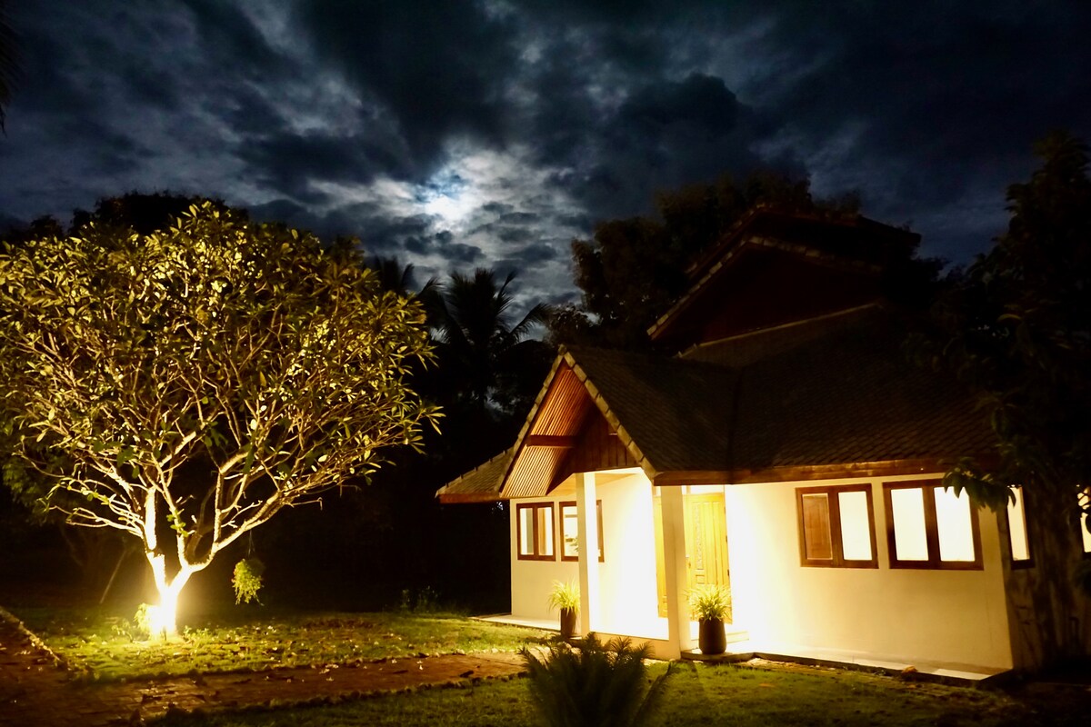 Escape to a peaceful riverside villa in Chiang Dao, located at the foot of the mountains and surrounded by a lush tropical garden. Enjoy a private patio with hammock, ideal for relaxing, sunbathing, and soaking in nature. Upstairs, the bedroom and living area offer beautiful river views, creating a calm and romantic atmosphere. The villa also features high-speed Wi-Fi and a comfortable work desk, making it perfect for remote work.