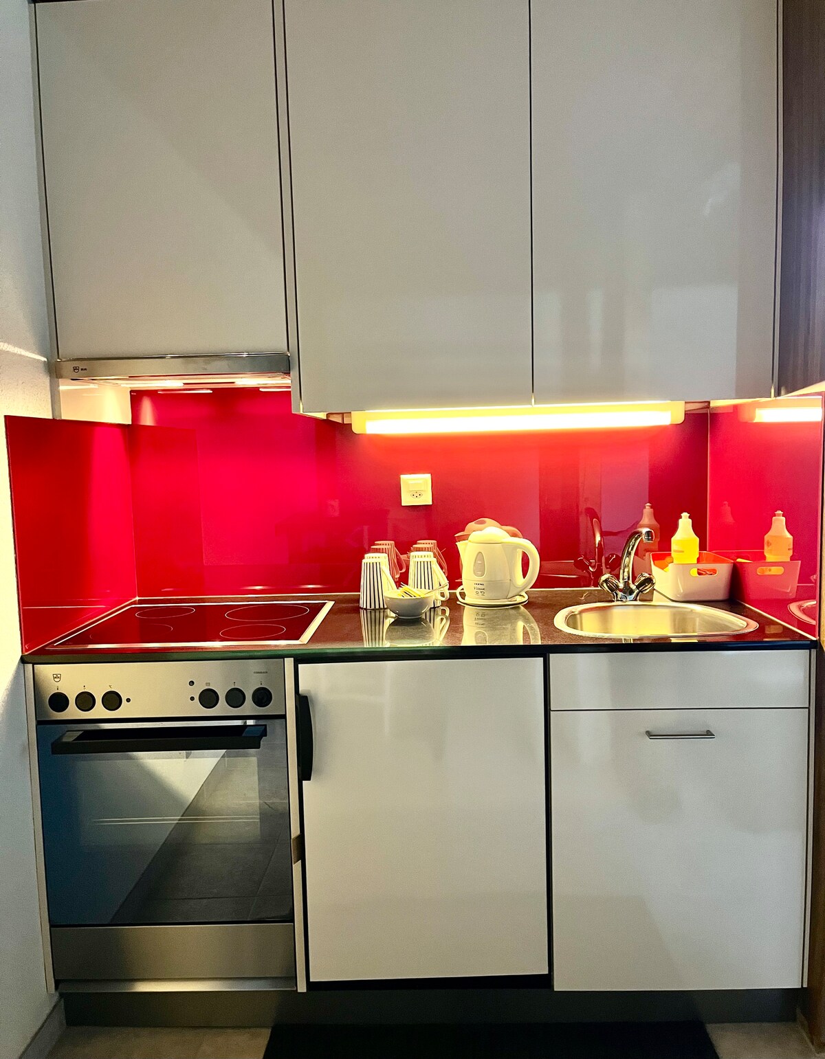 Te damos la bienvenida al hermoso Hinterthurgau. Apartamento Royal de 1,5 habitaciones cómodamente amueblado: cocina totalmente amueblada, cama doble de alta calidad con colchones cómodos, televisor curvo grande, baño moderno, balcón con mesa y sillas. Wifi rápido gratuito, espacio de estacionamiento. Cerca: Jakobsweg, monasterio de Fischingen, rutas de senderismo y ciclismo. También es posible reservar el apartamento Royal junto con el Estudio Bijou: Número máximo de personas: 5 adultos y 1 niño pequeño. Precio a petición.