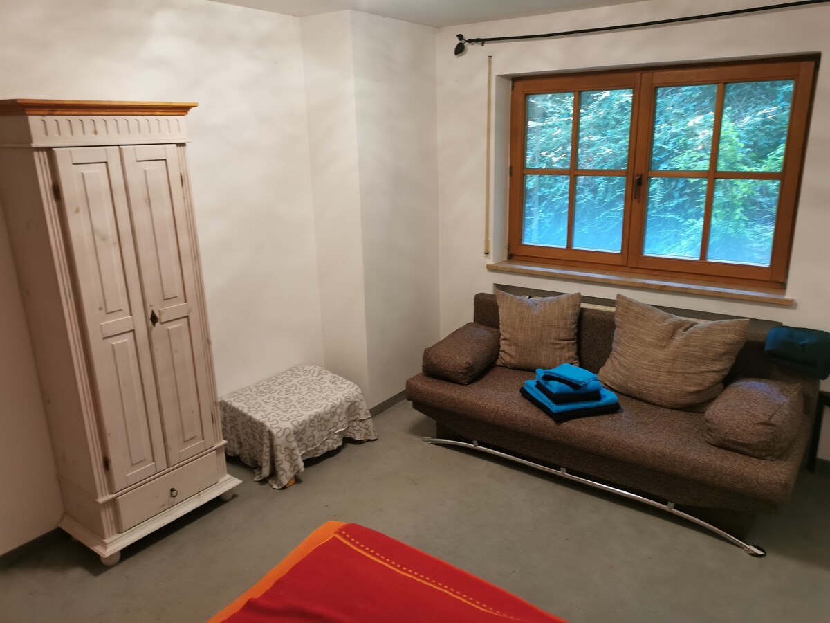 Pequeño apartamento privado (20 m²) con un pequeño y elegante baño (ducha/WC) y cocina americana (cocina eléctrica, nevera, cafetera) en una ubicación tranquila pero céntrica. A solo 10 minutos a pie de la estación de tren o del supermercado y a solo 15 minutos del centro de Murnau o del lago Staffelsee, TV/radio por satélite, aparcamiento frente a la casa en el seto, uso de la lavadora o secadora bajo petición. Incluye la tarjeta de invitado (por ejemplo, descuentos para el teleférico, museos, balnearios, etc.)