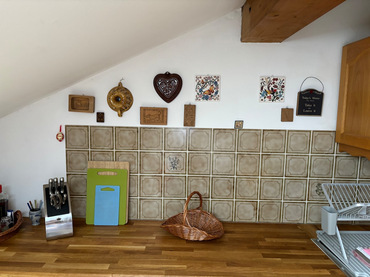 El apartamento para no fumadores para 2 personas se encuentra en el último piso de una antigua granja reformada. El apartamento (30 m² de superficie habitable) tiene una entrada independiente y una plaza de aparcamiento. Está equipado con una cama doble (1,6 x 2 m), ducha/WC, sala de estar con TV, comedor con cocina americana (máquina Nespresso, hervidor de agua, tostadora, microondas con horno y función de pizza). Hay disponible un frigorífico con congelador. El propietario lava los platos. Se tarda unos 7 minutos a pie en llegar al centro del pueblo.