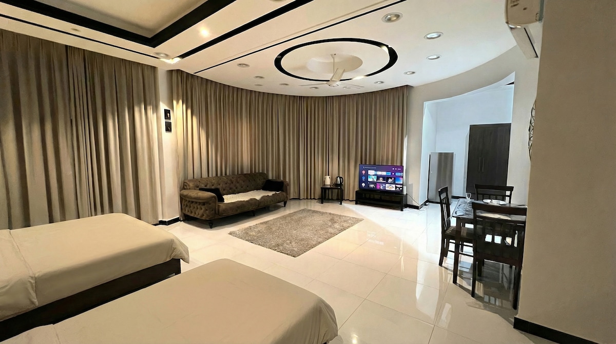 Professional Airbnb host in Muscat. An affordable studio in a quiet villa area in Al Khuwair, just 2 km from Avenues Mall. Ideal for solo travelers or business guests. The studio includes a comfortable single bed, sofa bed, 32” Smart TV with YouTube & Netflix, Wi fi, microwave, fridge, kettle, wardrobe and a private bathroom with shower. Close to popular restaurants, supermarkets, Flex Gym, and major mosques. The building is renovated, secured with CCTV on floors, clean, safe, and peaceful.