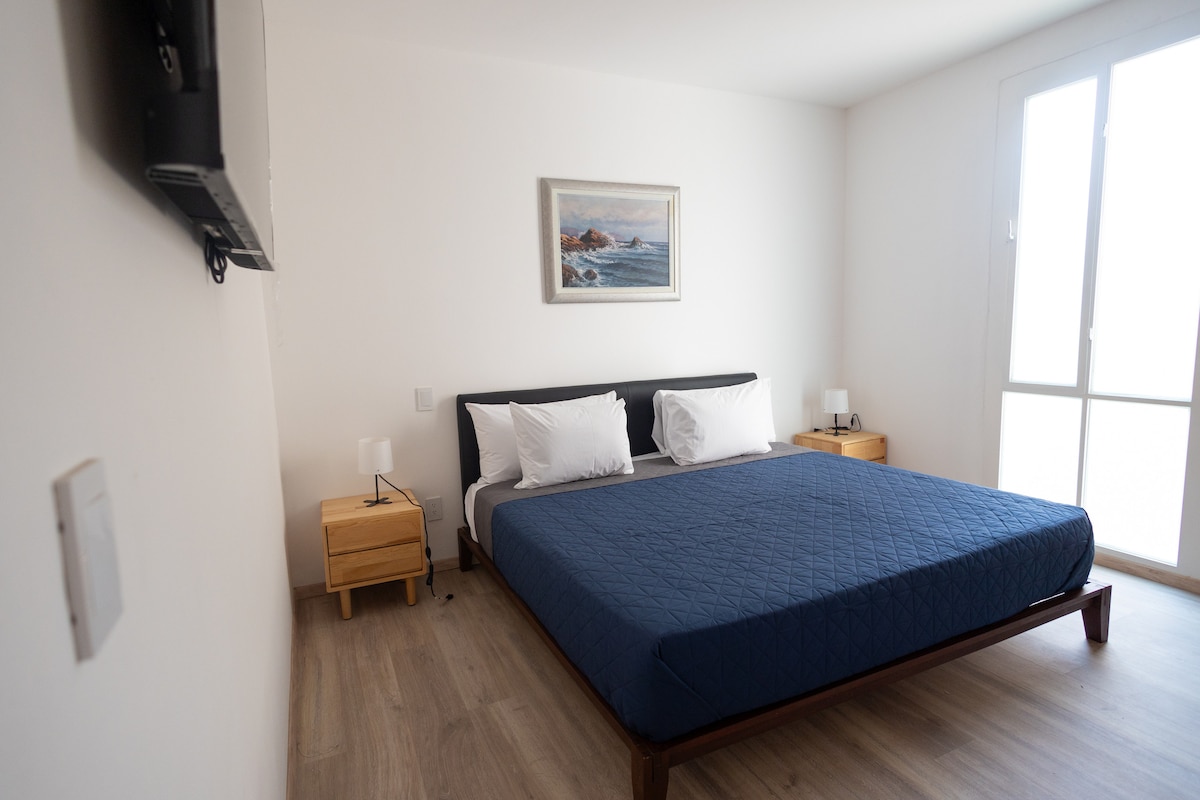MORADA LIVING Perfecto para amigos, compañeros de trabajo o viajeros que prefieren dormir por separado, este estudio ofrece dos camas individuales, sofá cama, cocina completa, Smart TV y escritorio. Su diseño moderno lo hace práctico y cómodo para estancias cortas o largas. El edificio cuenta con áreas comunes agradables y se encuentra en una ubicación estratégica: cerca del Centro Histórico, Colonia Americana y Parque Agua Azul. Comodidad, flexibilidad y ubicación en un solo lugar.