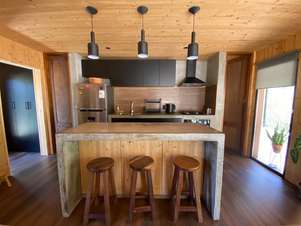 Los Eco Lofts “Konnichiwa” están inspirados en la arquitectura japonesa y nórdica, desde las técnicas constructivas usadas, la concepción fluida y sencilla del espacio, hasta el detallado diseño de los muebles. Perfectos para pasar unas vacaciones amigables con el medio ambiente, en familia o amigos. En un entorno natural y tranquilo, a solo 4 cuadras de la calle principal del centro de La Barra (restaurantes, supermercados, tiendas, movida nocturna) y a 6 cuadras de la playa.