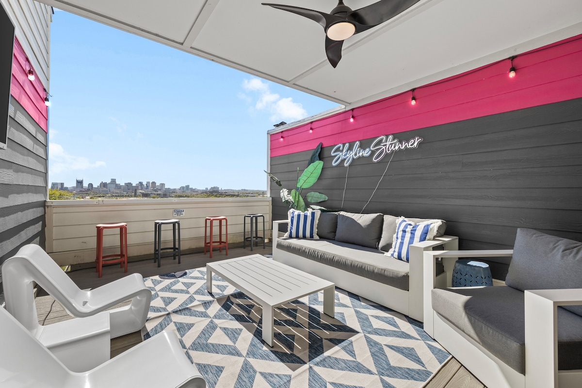 ¡Disfruta de Nashville con estilo con tu ALOJAMIENTO DE 5 ESTRELLAS! Esta nueva y exclusiva casa adosada está a solo una milla de Broadway y se puede ir caminando a The Gulch. Disfruta de unas vistas impresionantes del horizonte, una bañera de hidromasaje privada en la azotea y amplias habitaciones de estilo hotelero, cada una con su propio baño privado. Con una cocina de chef totalmente equipada, un elegante diseño abierto y comodidades de primer nivel, es la base perfecta para una estancia inolvidable en Music City.