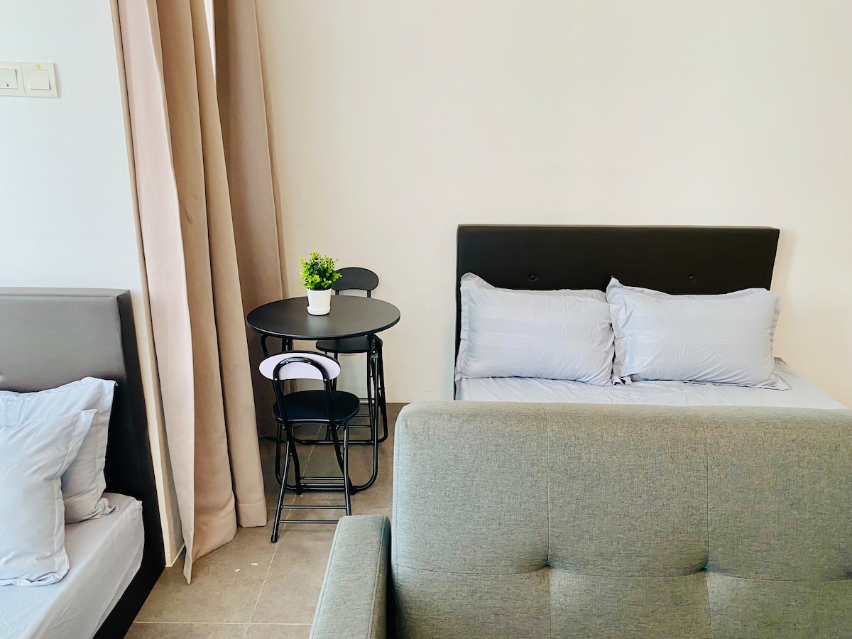 Bienvenido a nuestro NUEVO Skyline Haven ubicado en Empire Damansara Damansara Perdana. Es un apartamento estudio que incluye una cama tamaño queen y un sofá cama, cocina, microondas, cocina eléctrica, nevera, calentador de agua, secador de pelo, plancha, etc. Puede alojar de 1 a 2 personas. Puedes disfrutar de tu agradable fin de semana o viaje de trabajo aquí. ** huésped por primera vez, necesitaremos una identificación del huésped (licencia de conducir o documento de identidad) ** Se encuentra que fumar en la habitación estará bien Rm100.