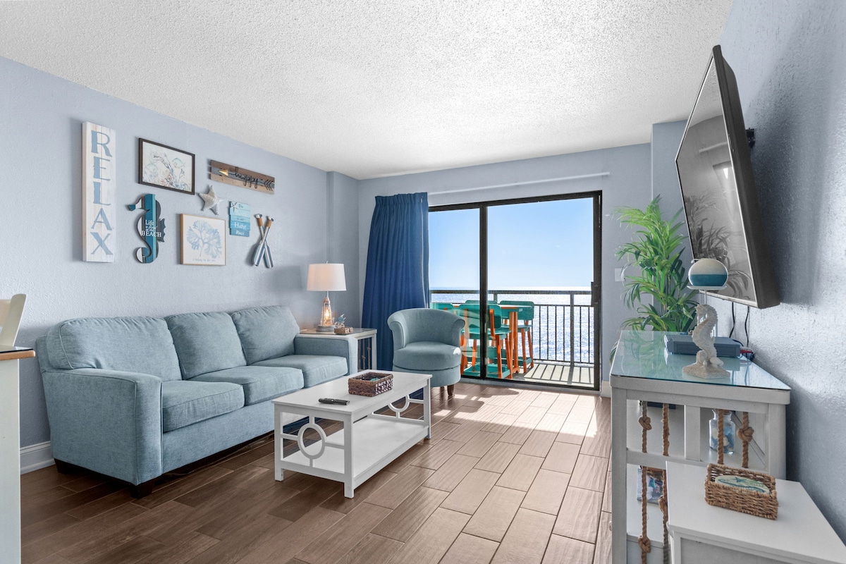 ¡Apartamento privado frente al mar en SeaWatch Resort! ¡Estamos en el quinto piso y tenemos un acceso sin llave muy fácil a nuestro apartamento! ¡Toma uno de los 4 ascensores hasta la planta baja y camina hasta una de nuestras piscinas o directamente a la playa! 🏖 ¡A unos pasos de la playa! - Se proporcionan 2 sillas de playa - Acceso a TODAS las piscinas/jacuzzis Cama de tamaño King. - Aparcamiento GRATUITO y cargadores de vehículos eléctricos disponibles - Lavadora/secadora dentro del apartamento