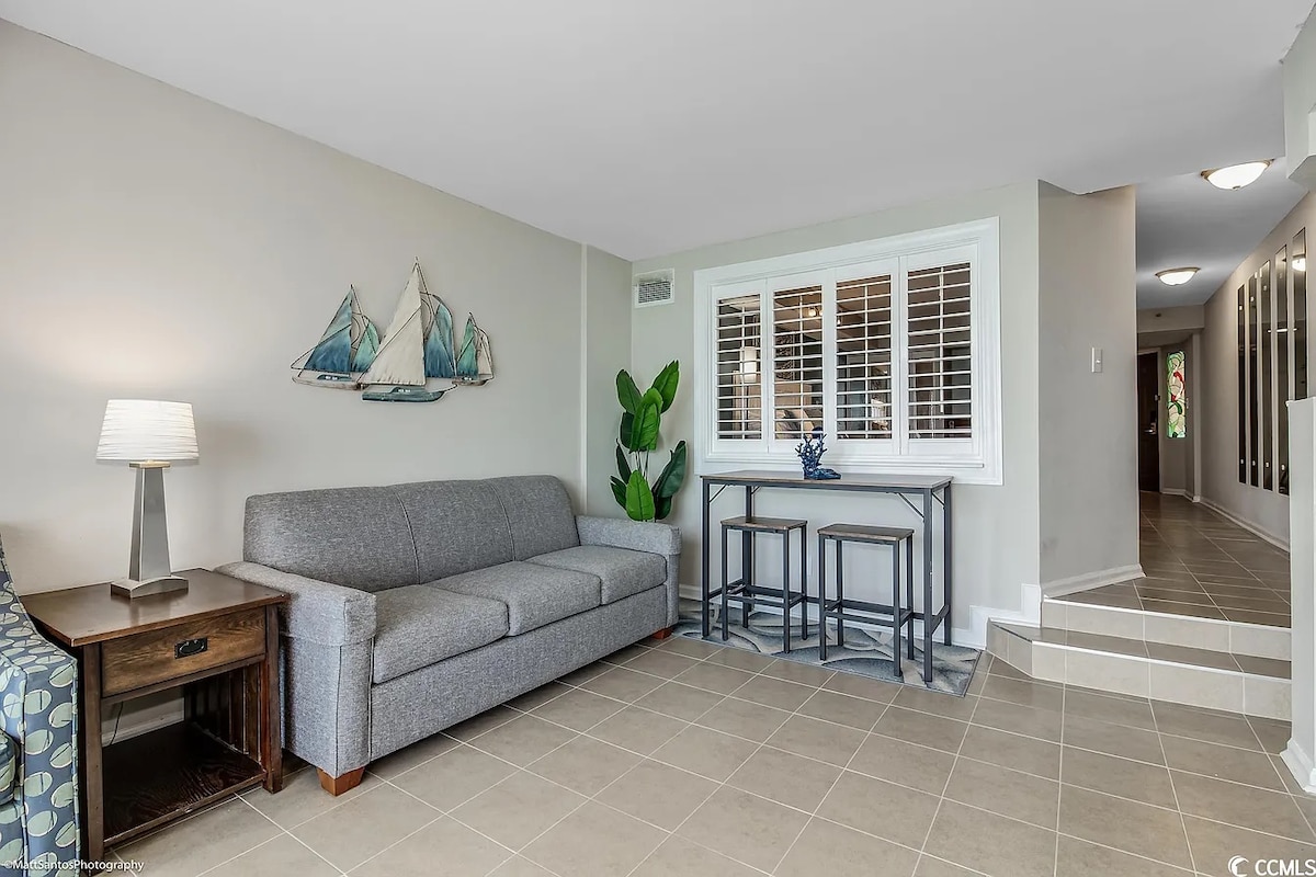 ¡Disfruta de impresionantes vistas al mar desde este condominio actualizado de Seawatch Resort! Despiértate con el sonido de las olas, relájate en el balcón privado y disfruta de las piscinas del centro vacacional, los jacuzzis, los ríos perezosos, un Tiki Bar, Starbucks y más. Cuenta con cama tamaño king, cama Murphy, cocina completa, estacionamiento gratuito y entrada sin llave. A pocos pasos de la playa y cerca de las principales atracciones, este refugio frente al mar cuenta con todo lo necesario para una escapada perfecta a Myrtle Beach.