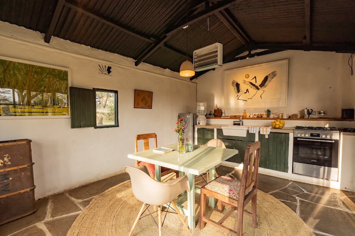 Esta hermosa cabaña rústica es una escapada romántica perfecta, o un retiro de escritores, para aquellos que buscan calma, serenidad y naturaleza, a solo 2 horas de Nairobi (30 minutos de la ciudad de Naivasha). Ubicada en el impresionante paisaje debajo del bosque de Eburru, y situada en la seguridad de la zona residencial de Greenpark, la casa tiene vistas al lago Naivasha, al monte Longonot y a Aberdares. La cabaña está a solo 5 minutos en coche del Great Rift Valley Lodge con tienda de la granja, bar/restaurante, piscina, tenis, golf y bicicletas de alquiler.