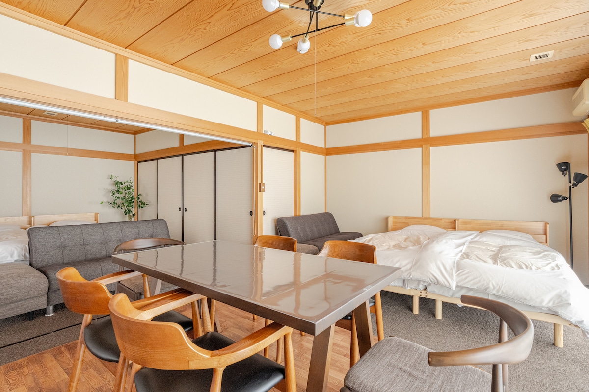 ※2026年6月1日より、軽井沢町では宿泊税制度が導入されます。当施設ではこれに伴い、宿泊料金を改定しております 日常を忘れ、新鮮な空気を深呼吸する軽井沢の拠点。 利便性を活かしたアクティブな滞在と、心身を満たす豊かな時間をお楽しみください 最大7名様まで宿泊可能。ご友人同士や二世帯でのご利用にぴったり ■寝室3部屋:プライバシーが確保できる寝室、リビングと繋がる開放的なスペース、ロフト ■和室付き: 小さなお子様連れや畳でくつろぎたい方にも快適 ■長期滞在OK: 洗濯乾燥機付き(洗剤完備) ■駐車場から玄関までフラットに入室でき、お子様からお年寄りまで皆さまに優しい間取りです ■観光や滞在に便利な立地 中軽井沢エリア、ハルニレテラスやトンボの湯まで車5分/しなの鉄道”中軽井沢駅”徒歩2分160m/アウトレット・旧軽井沢 車10分/スーパー・コンビニ・コインランドリー 車5分圏内 ※WiFi完備・薪ストーブ(薪代別途) ※敷地内全面禁煙・防犯対策実施済み ※防犯カメラ有(玄関及び敷地内周辺) ※4名様まで同一料金 (4名以上の場合は追加料金が発生)