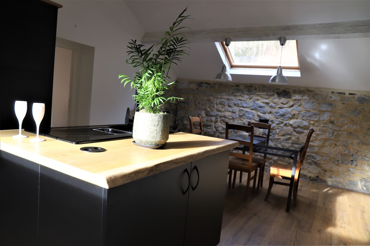 Le ofrecemos nuestro nuevo apartamento en el primer piso «Le Moulinsart». Acceso independiente, calle tranquila con aparcamiento gratuito en la calle. Una sala de estar con cocina equipada, zona de comedor y zona de estar, un dormitorio grande con dos camas y un baño grande con ducha y bañera. Una gran pantalla con Netflix, YouTube,... en el dormitorio y un televisor en la cocina. Zona de escritorio con wifi. Todo esto a 15 minutos andando del centro de la ciudad. Se admiten perros pequeños bajo petición.
