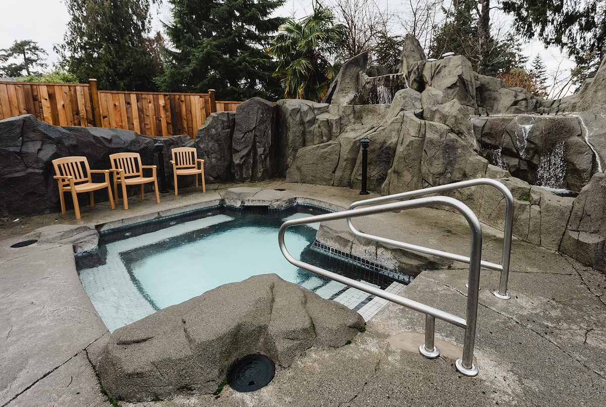 *Long-Term Rates Available* Cozy 1-bedroom, 2-bed family-friendly condo at Sunrise Ridge Resort. An hour to Mt Washington skiing. Sleeps up to 4 adults with a queen bed and pull-out sofa. Full kitchen & a 6 person dining table. Resort amenities include a year-round hot tub, gym & beachside. Features 2 full bathrooms, including an ensuite with a luxurious, deep soaking tub. Relax on the private patio with a BBQ, & walking distance to restaurants, cafes, and Rathtrevor Beach for endless fun!