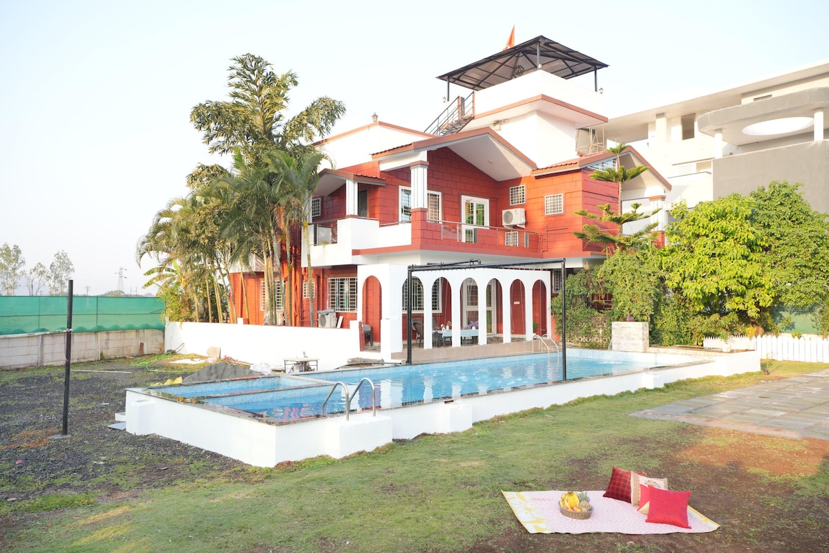 Luxury 4BR Villa- Infinity Pool & Mt view I Karjat