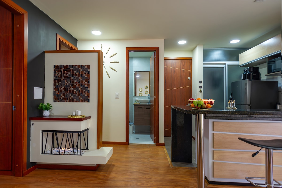Hospédate en este espacio tranquilo, moderno y elegante con acabados de alta calidad, pensado en cada detalle para ofrecer confort, calidez , descanso y comodidad, disfruta de una acogedora chimenea para las noches frescas junto con un vino y de un sistema de sonido envolvente . Además de una cocina moderna equipada para quienes disfrutan cocinar. Ideal para viajeros que buscan privacidad y excelente ubicación, vive una experiencia única que te harán sentir como en casa . Te esperamos!