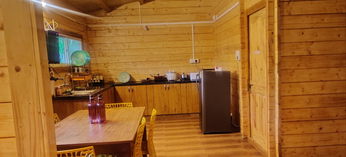 Pasa tu escapada en nuestra exclusiva granja enclavada en medio de exuberantes jardines verdes y plantaciones de mango repartidas en una propiedad privada de un cuarto de acre. Disfruta de una estancia única en una encantadora cabaña de madera diseñada para transportarte en el tiempo con sus interiores cuidadosamente seleccionados. Propiedad privada tranquila a solo 30-40 minutos en coche de Hitech City, Gachibowli y otras zonas privilegiadas con todos los servicios que necesitas. Entra en la belleza de la naturaleza y crea recuerdos duraderos con tus seres queridos.