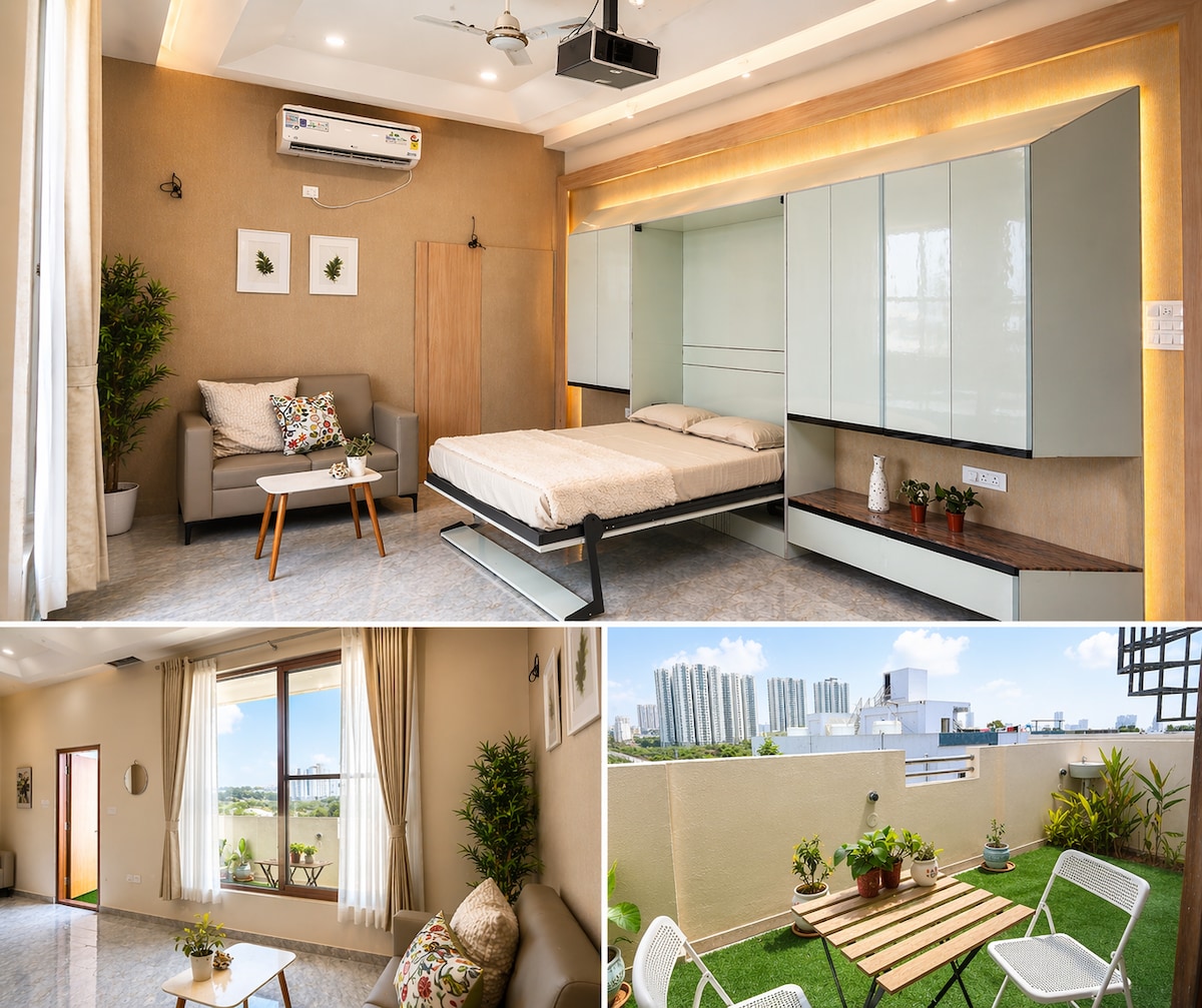 Premium 2BHK en Prime Gachibowli, Nanakramguda, ideal para profesionales de TI. Amplio apartamento completamente amueblado en una comunidad cerrada segura cerca de los principales centros de TI como Microsoft, Amazon y Wipro. Cuenta con wifi de alta velocidad, un espacio de trabajo exclusivo y servicios diseñados para ofrecer comodidad y productividad. Perfecto para viajeros de negocios que buscan comodidad y una vida de lujo en el mejor barrio tecnológico de Hyderabad. Trabaja, relájate, repite. Tu estancia perfecta para negocios en Hyderabad.