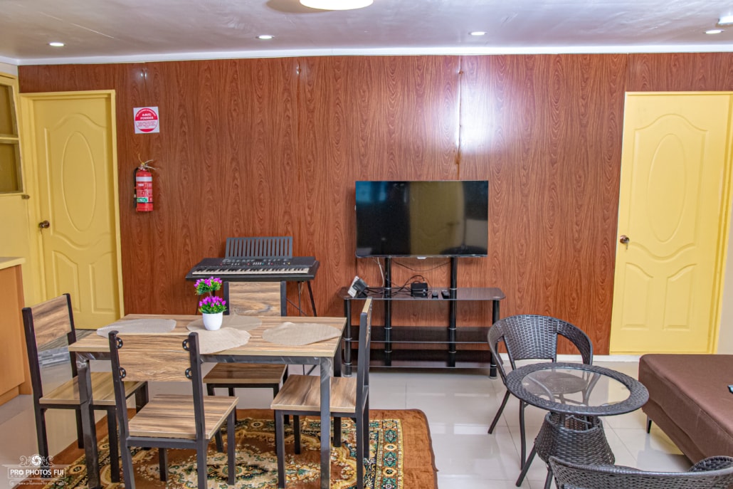 Marigold Apartments se encuentra a 5 minutos del Aeropuerto Internacional de Nadi y a poca distancia a pie de un buen supermercado y restaurantes. Los apartamentos son nuevos y tienen un promedio de 135 metros cuadrados. Cada apartamento está decorado con buen gusto y cuenta con todas las comodidades de un hogar, incluida una cocina moderna totalmente equipada. Ofrecemos internet de alta velocidad, un televisor inteligente con Netflix y otros servicios de streaming junto con los servicios de Sky que ofrecen 25 canales de deportes, noticias y otros entretenimientos.
