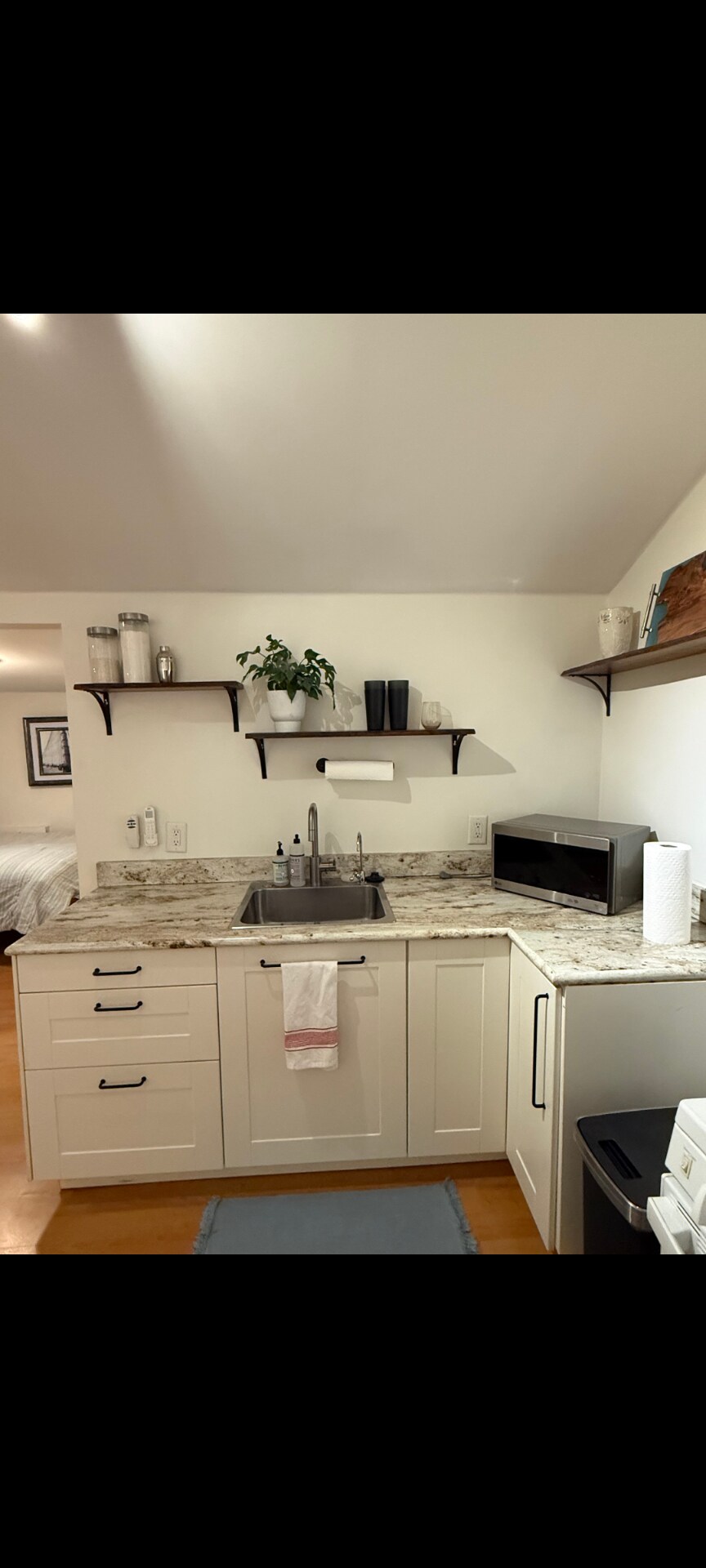 Este garaje loft de dos pisos está separado y se encuentra en la parte trasera de la propiedad, a 45 pies de la casa principal. La primera planta tiene la cocina y la sala de estar, luego sube por la escalera de caracol hasta el dormitorio con techo de catedral con luces de pista y baño privado. Me encantan los perros y los permito con permiso previo. No se admiten mascotas sin aprobación previa (la tarifa por mascota es de 50 USD por estancia o 10 USD por día, lo que sea mayor). Mi ubicación está a pocos pasos de Starbucks y otros restaurantes.