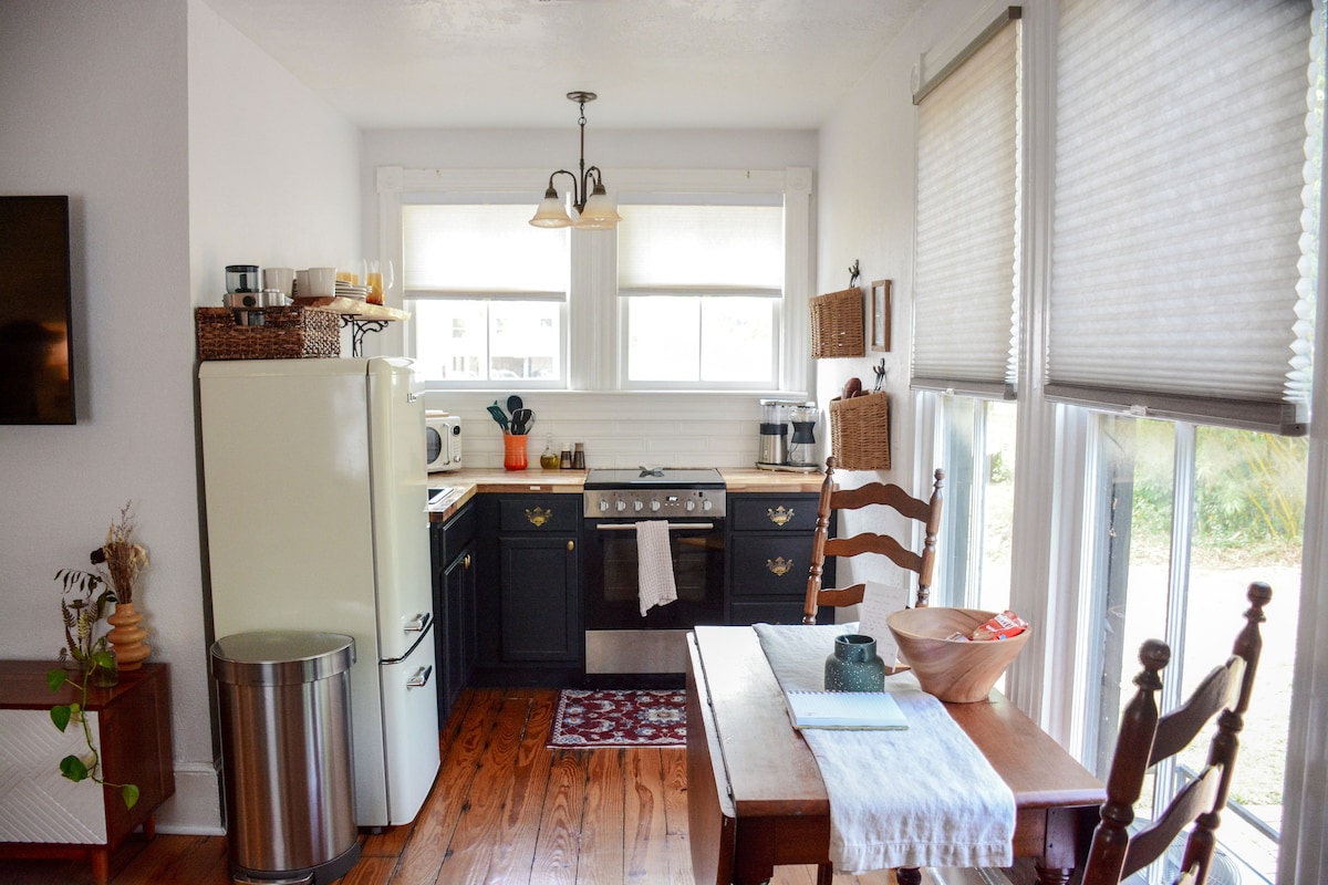 Bienvenido a nuestra «casa de muñecas» de 1901 con encanto atemporal y mejoras contemporáneas. Desde la bañera de hierro fundido original que nosotros mismos restauramos, hasta la nueva cocina de carnicero. Te encontrarás en la zona de Brooklyn de Riverside y cerca de 5-points, Avondale, Murray Hill, DT Jax y a 4 millas de Daily's Place y Vystar Veterans Arena. Nuestra casa se ha convertido en un dúplex, con esto ubicado en la parte posterior y una oficina tranquila ubicada en la parte delantera del edificio.