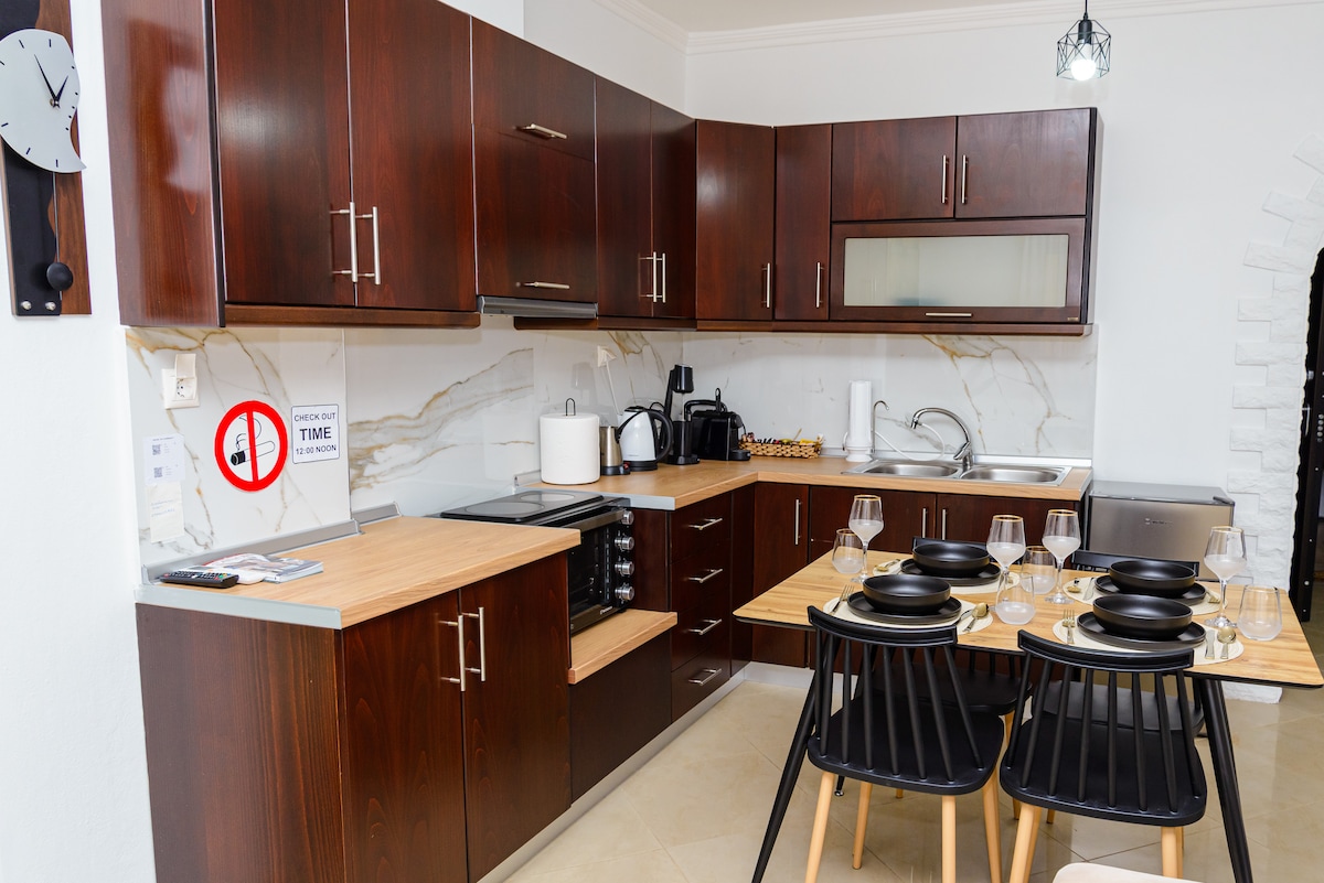 A cozy apartment just 300 meters from Thassos port. It offers a fully equipped kitchen, a spacious living room with dining area, a cozy bedroom with a king-size bed, and a brand-new modern bathroom with walk-in shower. All appliances, including washing machine, dishwasher, oven, and fridge, are new. With three balconies, the apartment is filled with natural light all day. Guests enjoy free WiFi and Netflix. Parking place always available. Discover more at glyfoneriholidays(dot)com