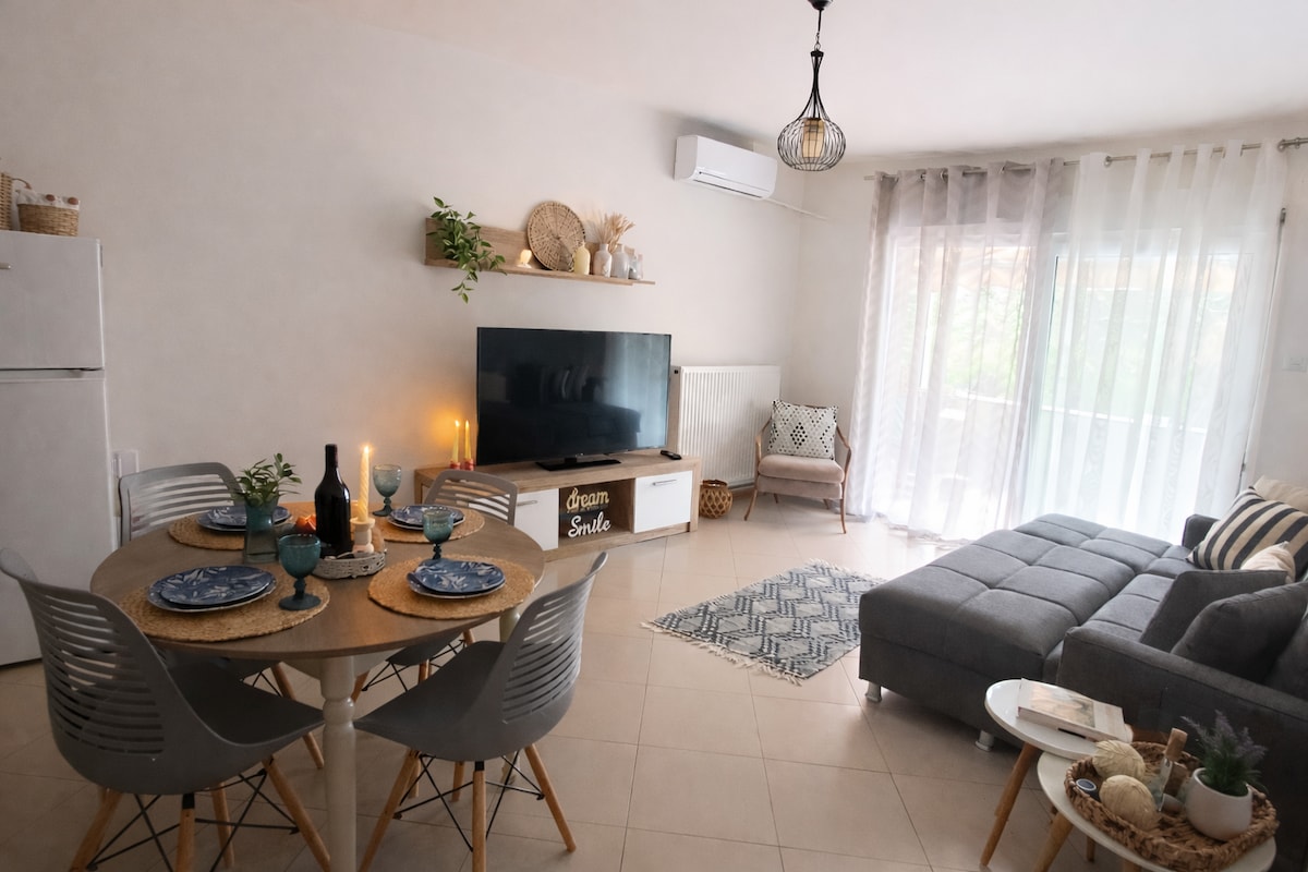 SOL • Latín para sol, MERA • Griego para día. 💚 ☀️ Un apartamento acogedor y fresco, justo en el centro de la ciudad. Una ubicación privilegiada, a solo un minuto a pie de la playa, tabernas y bares; ¡el mar está a un paso de la casa! Equipado para hacer que tu estancia sea agradable, con atención al detalle y respeto por la higiene. ¡Bienvenido a SOLMERA!