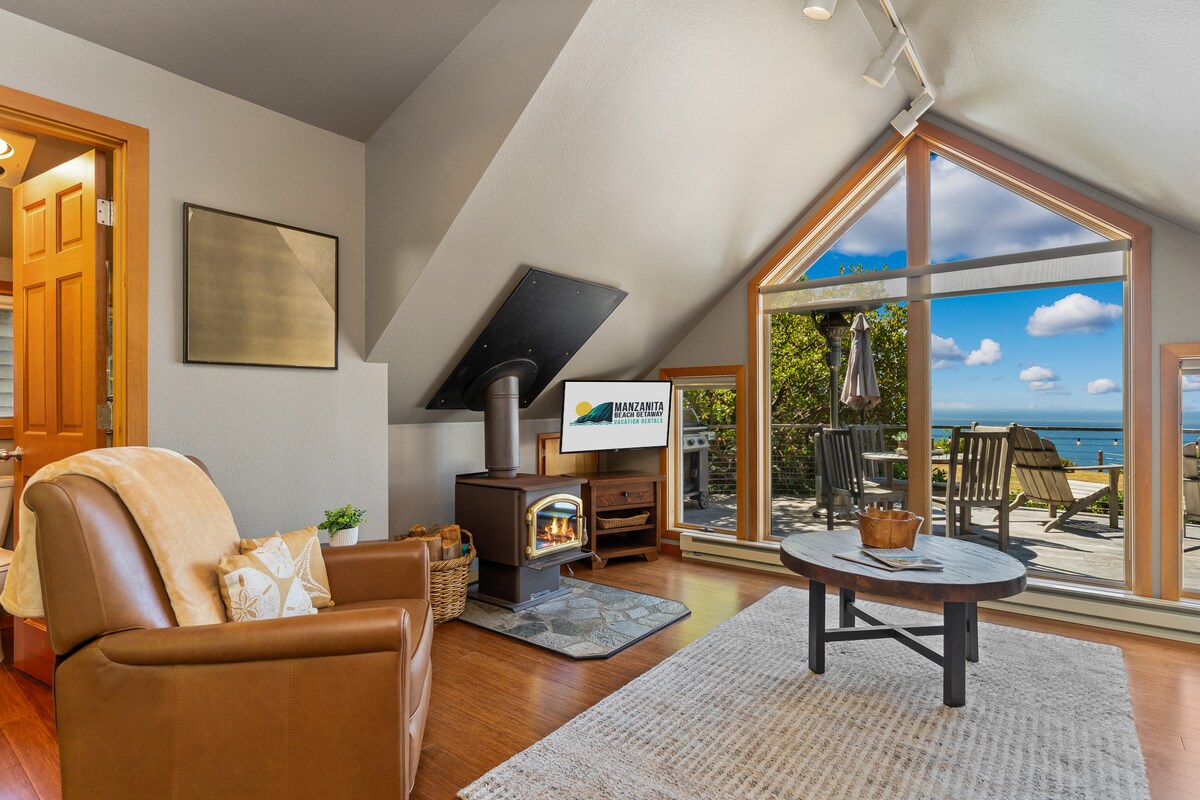 Acurrúcate frente a un fuego de leña mientras observas las olas estrellarse en la playa de abajo: ambiente de cabaña para todas las estaciones. Relájate en una silla Adirondack en la terraza privada mientras disfrutas de las vistas que van desde Cape Lookout hasta los 3 Arches. A 5 minutos a pie de Oceanside Beach, el Hideaway es la escapada por excelencia de Oregón con la sensación de una acogedora choza de surf.... cuasi-rustic con todas las comodidades adecuadas y una de las mejores vistas panorámicas al mar de Oregón. #851-10-1849-STVR