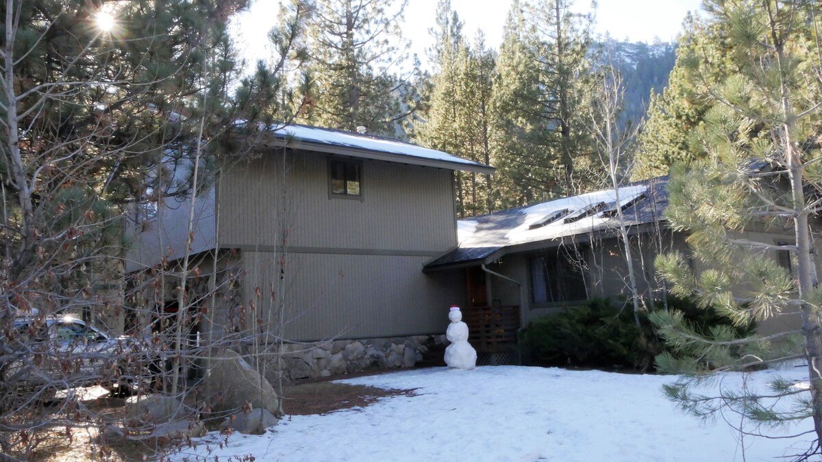 Si lo que buscas es tranquilidad, ¡no busques más! Relájate en la comodidad de la montaña serena en este hermoso y tranquilo refugio privado, ¡perfecto para un retiro de esquí, senderismo y ciclismo justo al final de la calle! Fácil acceso al río superior Truckee, a pocos minutos de hermosas playas, estaciones de esquí y excelentes restaurantes. Ven a relajarte después de un día en la montaña para descansar con tu bebida favorita junto a un hermoso fogón o relájate en hamacas y sillas de descanso bajo los pinos.