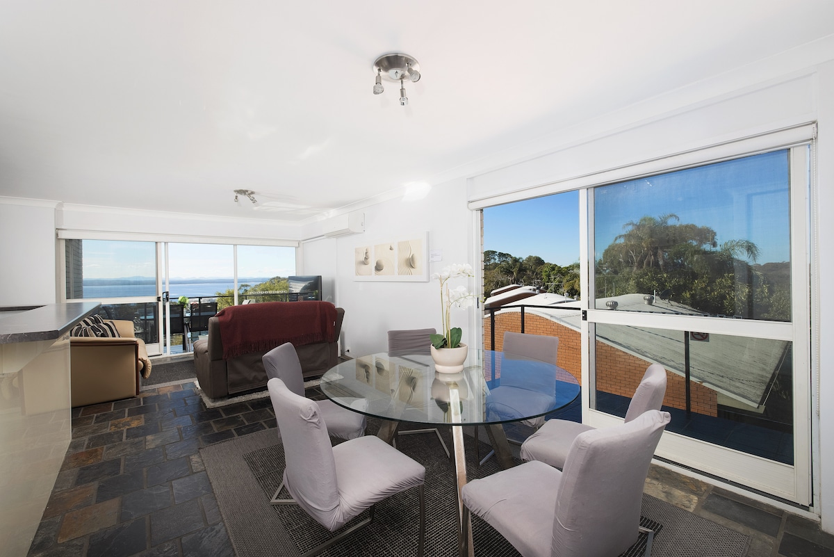 A solo 1-2 minutos a pie de las tiendas, el puerto deportivo y la playa de Nelson Bay... el departamento está inmaculadamente presentado, en el tercer piso (sin ascensor) , con azulejos de pizarra en todas partes. Disfruta de las increíbles vistas al agua mientras cenas en el balcón. Hay muchas cosas que hacer aquí. Paseos en camello, quads, motos acuáticas, centro de tiburones y rayas, nadar con delfines, surf, SUP, parque nacional...