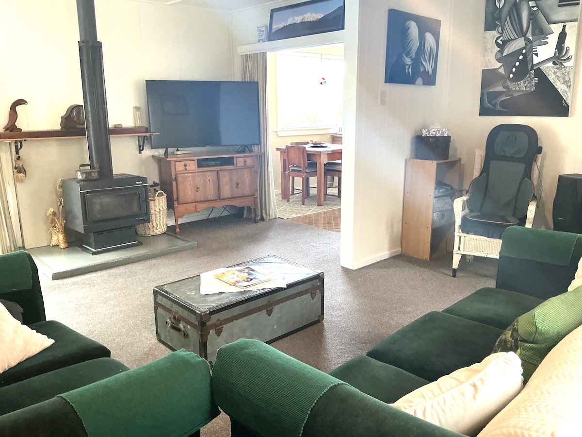 This classic waterfront kiwi bach sleeps up to nine people. There is a swimming pool as well as safe swimming for kids at the sandy beach. -two sheltered covered outdoor areas and an outdoor fireplace. -fish from the rock wall on the property -plenty of parking for a boat and other vehicles -an open fire, heat pump/AC, double glazed windows, underfloor insulation. -private -walk to Mapua Village and the Wharf -family friendly
