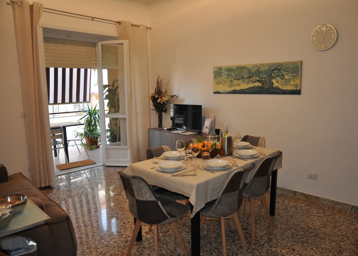 Departamento muy luminoso y espacioso en el cuarto piso, a pocos metros del mar, totalmente amueblado y completo con todos los accesorios; en el centro de Nettuno, cerca de todas las atracciones turísticas y la estación de tren a Roma (adecuada para el Guibileo 2025). Varios lugares de interés histórico cercanos (Castello Sangallo, Borgo Medievale, Basílica Santa Maria Goretti, Torre Astura, Cementerio Monumental Americano, etc.)