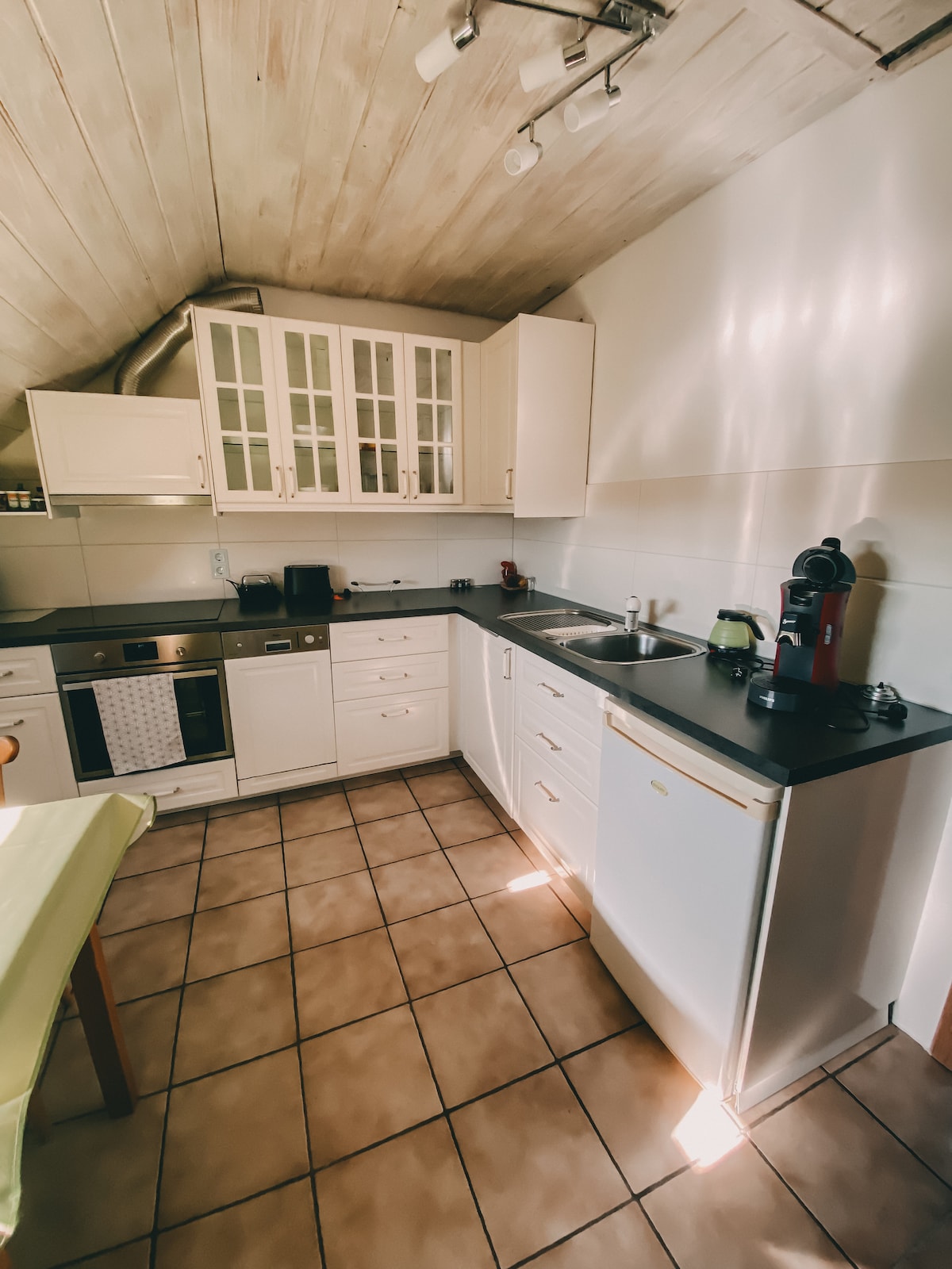 * Free parking lot, garden pavilion and balcony * Living room with fireplace, reading corner, hanging chair and 4k TV * Family-friendly - high chair, travel cot, children's cutlery * New fully equipped kitchen - coffee, spices and snacks * 85 square meter maisonette apartment on the 1st floor * Workstation with office chair, external monitor and Lan connection * Air conditioning for dining area
