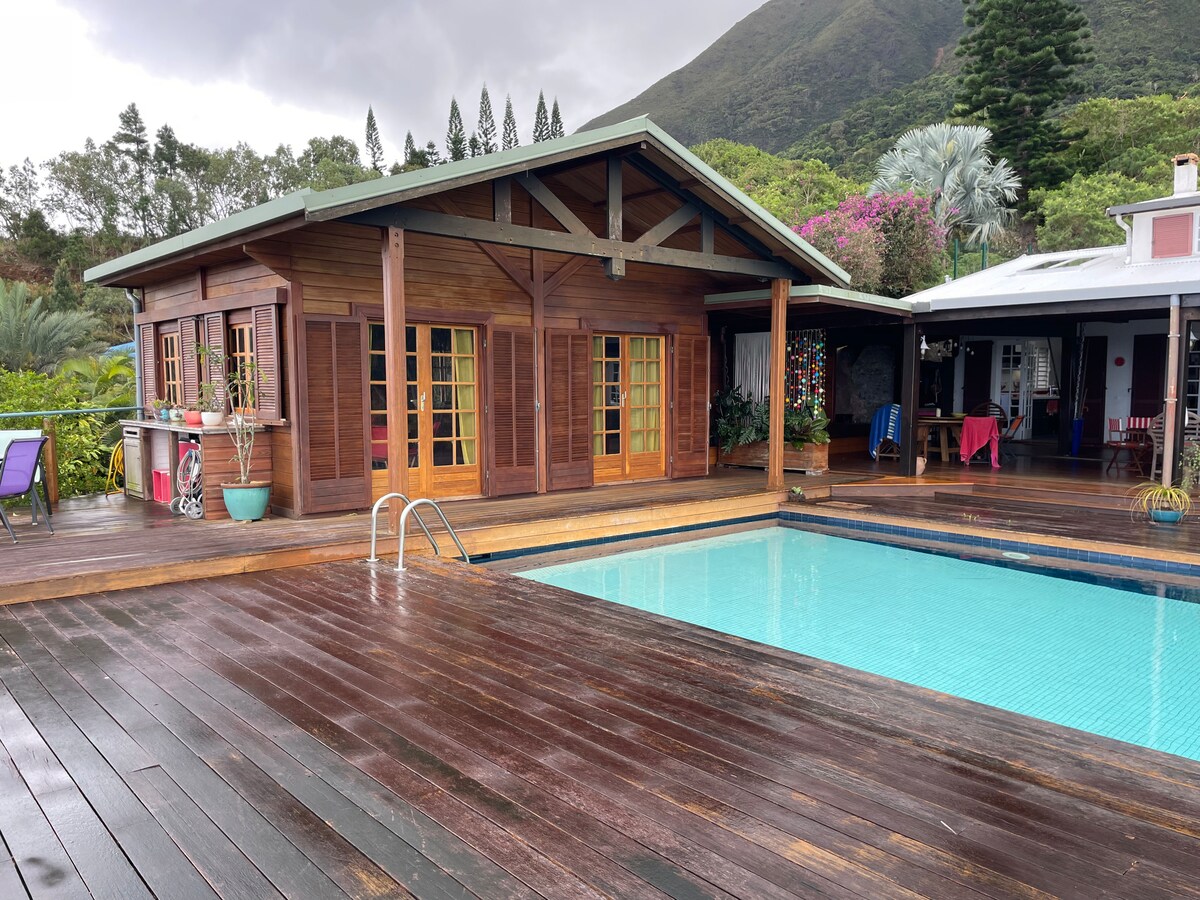 En un entorno idílico, ven y relájate en un bungalow de alta calidad ambiental ubicado en el bosque, con vistas al mar 180 °. 70 m2 totalmente equipados, concepto ecológico, cocina americana, cama doble, baño y WC separado (inodoro seco), gran terraza. A 30 minutos de Noumea, en un distrito tranquilo, en la puerta de entrada al Gran Sur, playa a 2 minutos. Suministro de un kayak de 2 lugares, esterillas de yoga, senderismo desde el bungalow.