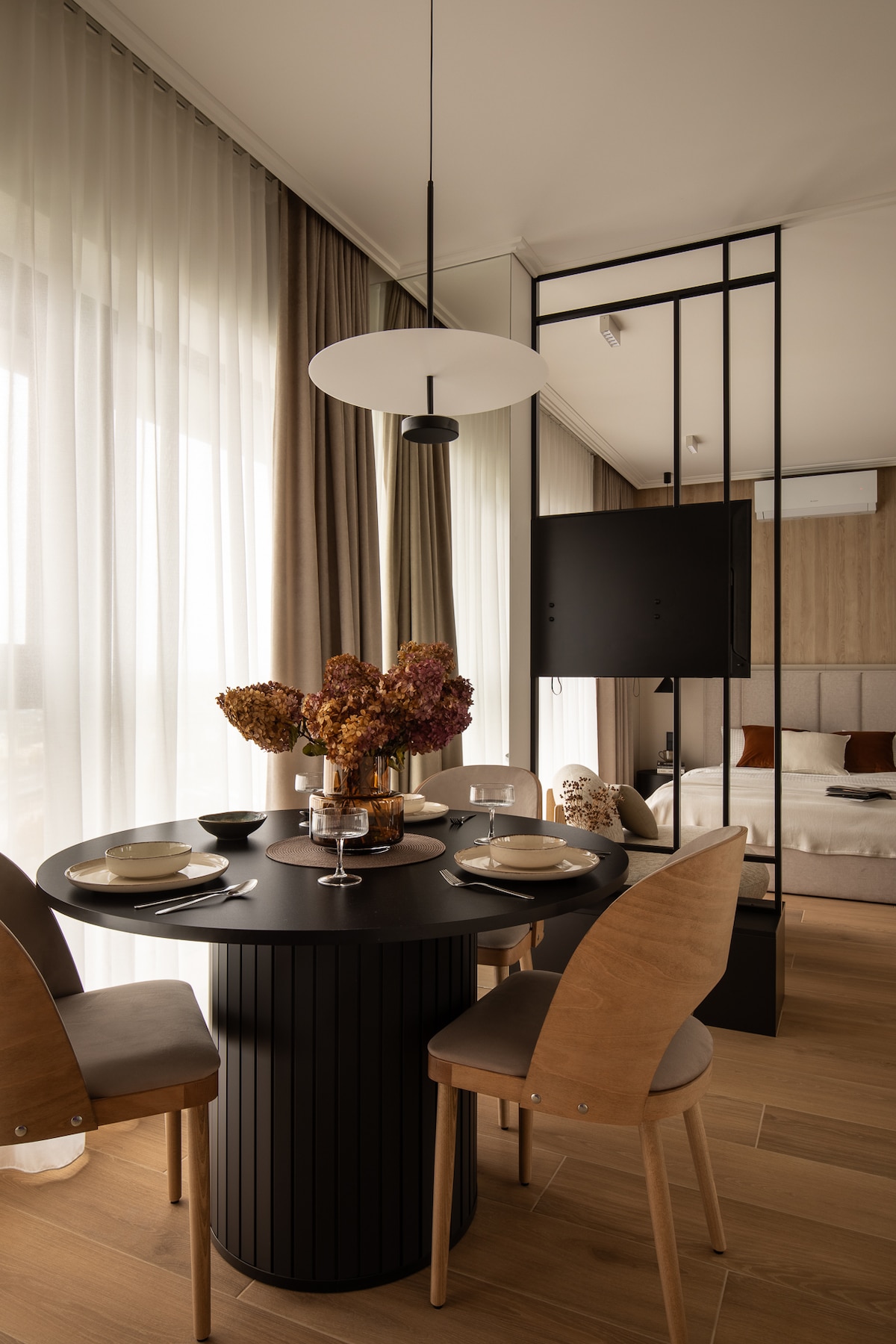 Admira el ambiente elegante de un apartamento urbano con paneles y paredes de metacrilato