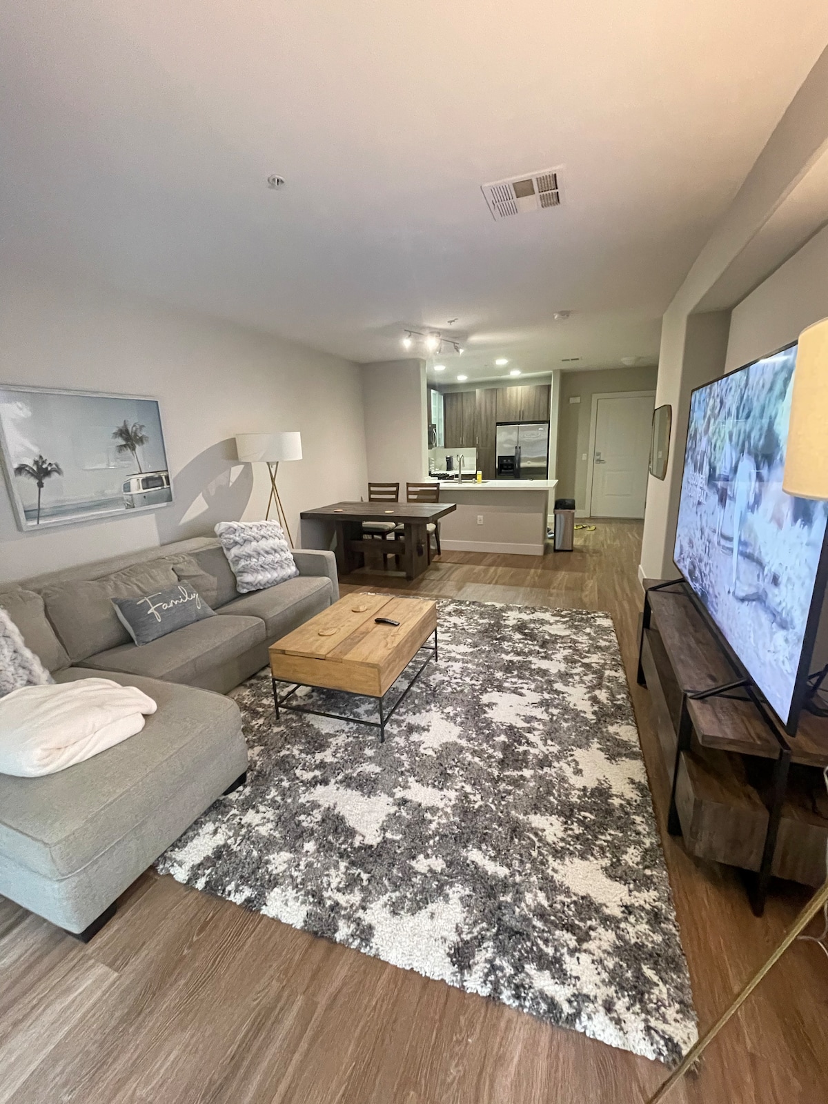 Enjoy your stay in a stylish and spacious mid-century modern apartment with premium amenities - hot tub, pool, gym, playground, BBQ area. Ideally situated between Los Angeles and Santa Barbara, it's perfect for a weekend escape and fully equipped for an extended stay. INCLUDED: *Access to heated pool, large hot tub, gym *55" Smart TV + Netflix & HBO *850 sq. ft. *Coffee, tea, cookies *Private balcony *Fully equipped kitchen *Parking *Washer, dryer, dishwasher *Workspace + monitor