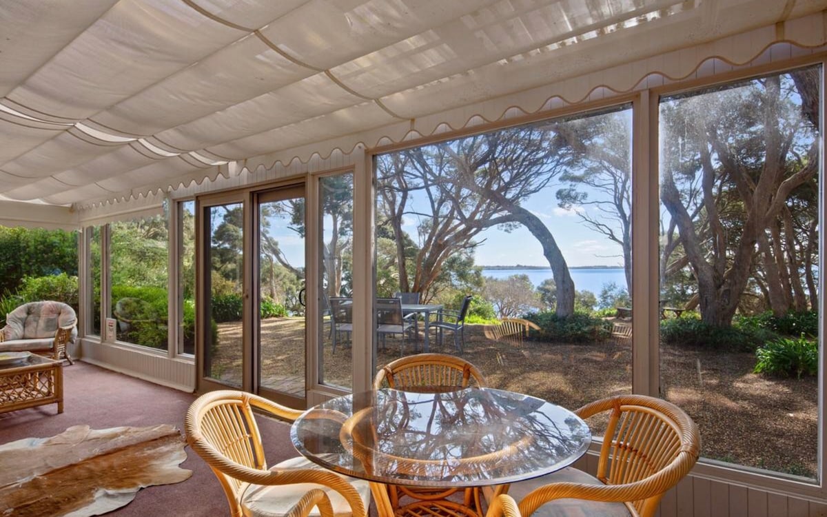 **Please note property description regarding guest numbers (specifically seperate cottage & house use)** @watersedgephillipisland Our oasis is a quiet gem nestled among century old Manuka trees boasting some of the best sunset views on Phillip Island. A quiet close knit neighbourhood, the property is a cosy retreat that soaks up the northern views with ample indoor cover for the cooler months. Groups of 4 people will be for the main house, 5+ people will be booking for the house+cottage.