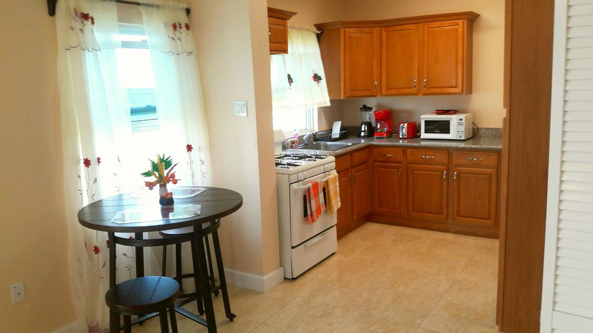 Disfruta de la hospitalidad de la hermosa St. Kitts en Seabreeze Studio Cottage. Seabreeze es un apartamento tipo estudio tranquilo, independiente y con aire acondicionado para dos personas con todo lo necesario para unas vacaciones encantadoras. A 5 minutos en coche del océano Atlántico y del mar Caribe, restaurantes, golf, vida nocturna y mucho más, la casa de campo ofrece comidas en el interior y al aire libre, una cocina, TV de pantalla plana, wifi, lavadora, secadora y encantadoras brisas caribeñas. Proporcionamos toallas (de baño y playa), ollas, sartenes y ropa de cama.