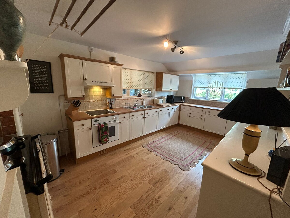 Se accede al anexo del primer piso a través de una escalera exterior cubierta. Hogar lejos de casa, acogedor pero espacioso alojamiento de una cama (2 huéspedes) con sala de estar y cocina. El balcón es perfecto para tomar café por la mañana o bebidas por la noche (si el tiempo lo permite) con vistas panorámicas a la campiña de Hampshire. El anexo está junto a nuestra casa, pero es totalmente privado y de uso exclusivo de los huéspedes. Te daremos la bienvenida y podremos responder a cualquier pregunta, pero también respetaremos tu privacidad.