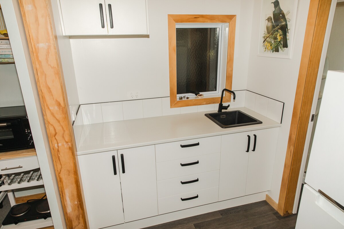 Ven y disfruta de un par de noches en la exclusiva Blackwood Cabin. Con vistas a un hermoso arbusto de acacia negra y una encantadora arboleda de nogales. Pon los pies en alto y relájate en el impresionante baño de piedra al aire libre con una copa de vino y disfruta de las vistas. Completa con todo lo necesario para la escapada de lujo perfecta: elegante, moderna y un placer completo. Y a menos de 5 minutos del municipio de Raglan.