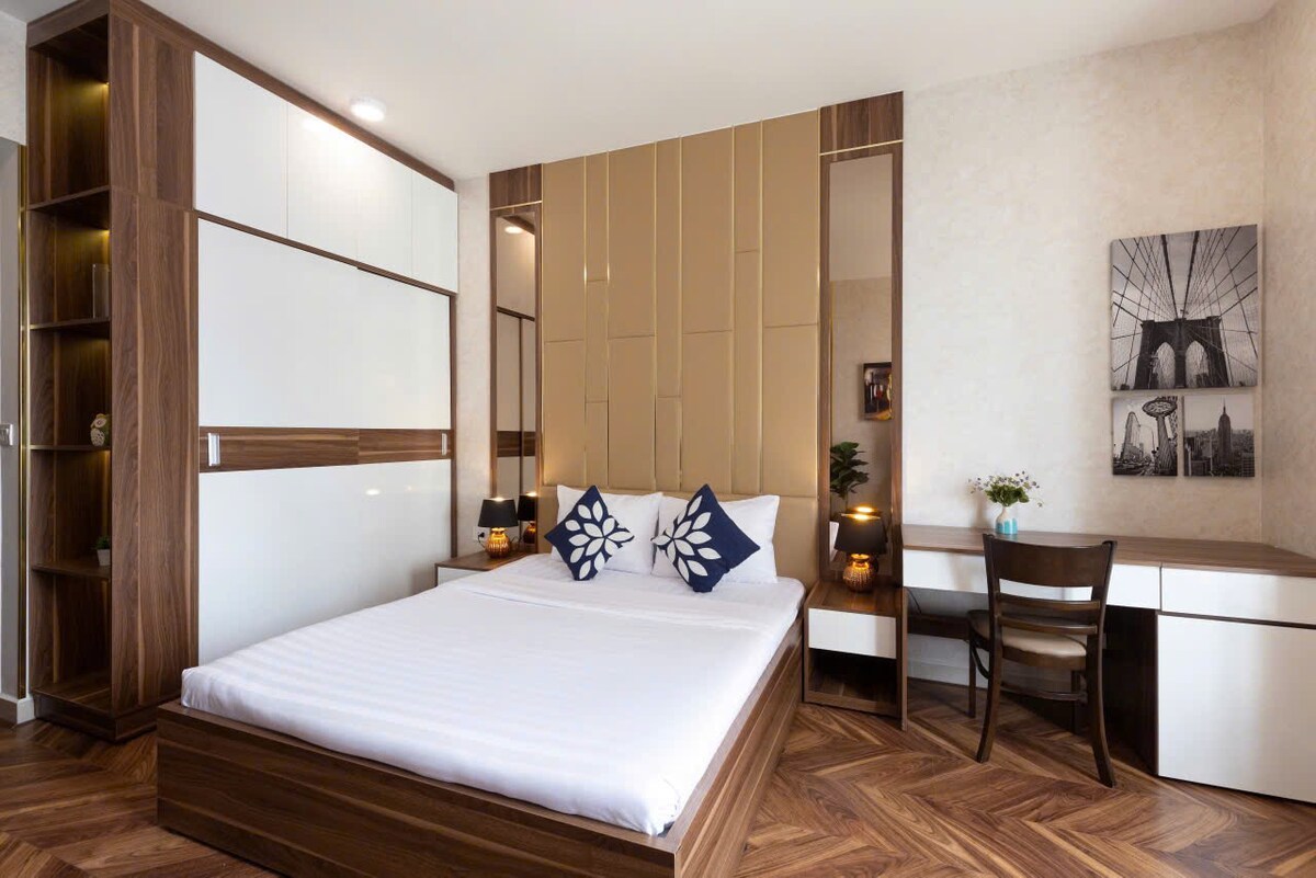Un apartamento estudio bellamente diseñado con todo lo que necesitas, céntrico pero escondido lo suficiente para una noche tranquila de sueño lejos del ruido pesado de la ciudad. Ideal para viajeros que quieren explorar Saigón y buscan comodidad de calidad y una experiencia más local. - Hermosa pileta - Wifi rápido gratuito, TV con cable - Servicios gratuitos para tu vida: lavadora, secadora, aire acondicionado, nevera, agua caliente. - Cocina con suficientes herramientas para cocinar. Nota: no proporciona/respalda las facturas con IVA