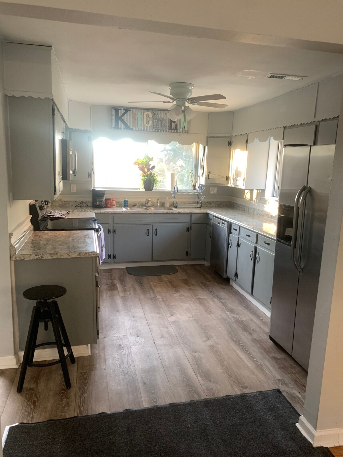 Este es un apartamento de 1 dormitorio personalizado que admite mascotas y está situado en la primera planta con una salida independiente para acomodar a tu compañero de viaje de cuatro patas. El apartamento tiene techos muy altos y la cocina está totalmente equipada con todo lo necesario para tu estancia, incluyendo café, té y especias. Además, hay un nuevo sistema de filtro de agua RO. El dormitorio tiene una cama tamaño queen con ropa de cama West Elm de alta gama y un colchón híbrido, 2 armarios y un baño grande con lavadora y secadora HE y un sofá cama extraíble con una cama tamaño queen.