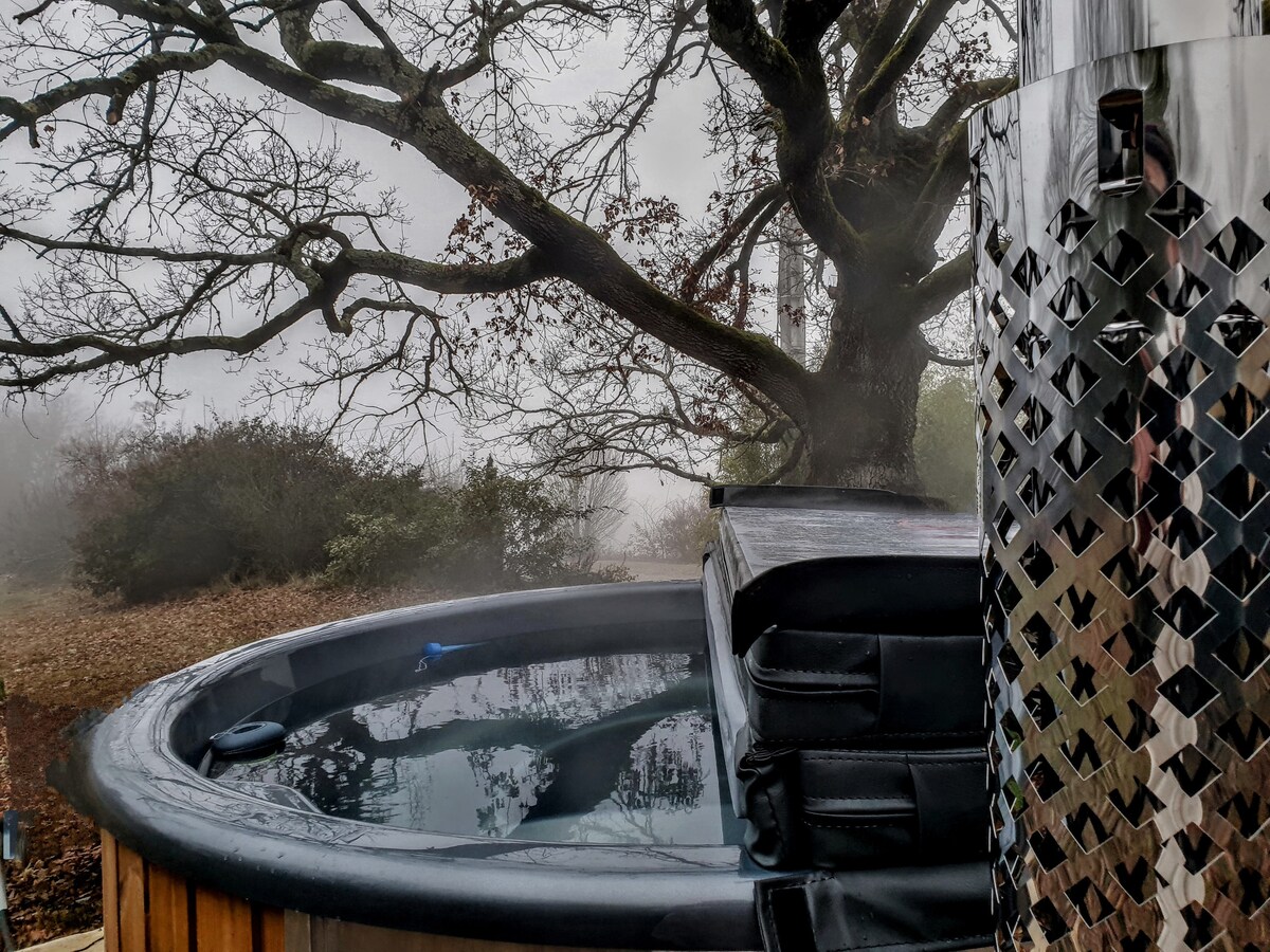 Ubicada en el dosel de un bosque con vistas a un valle salvaje, esta cómoda cabaña equipada con una zona de cocina y un baño con inodoro seco es perfecta para los amantes de la naturaleza o cualquier persona que busque tranquilidad. ESTRICTAMENTE PROHIBIDO FUMAR EN EL EXTERIOR E INTERIOR Y NO SE PERMITEN VELAS. Absolutamente ninguna. En su lugar, le proporcionamos velas sin llama a pilas.