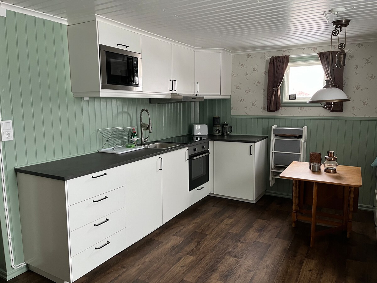 Bonita casita junto al río Råne. Desde el principio, sirvió como una cabaña de panadería. Cuidadosamente renovado. Una sencilla cocina equipada donde se puede cocinar y calentar la comida en un microondas. Solo se permite cocinar de forma sencilla y no freír, ya que no hay ventilador de cocina. La luz del norte es común en la casa, si el clima es bueno.