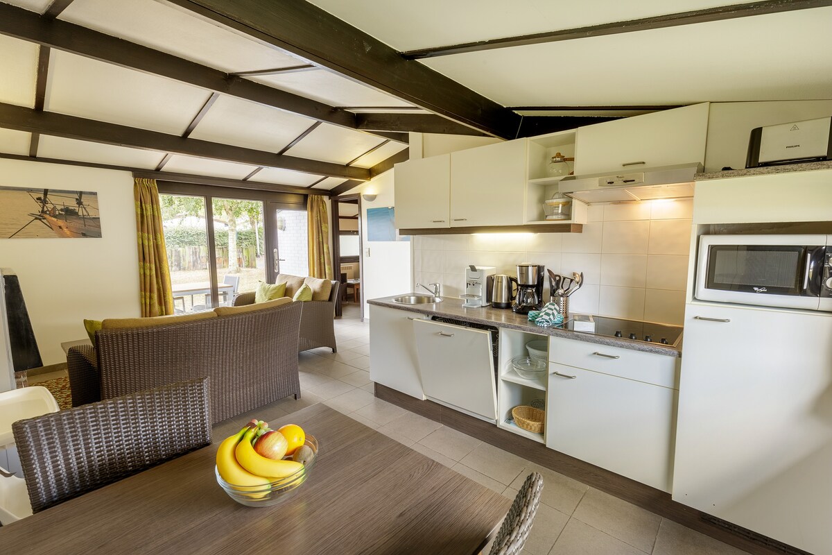 Esta casa de vacaciones de 59 m² tiene 1 dormitorio, un baño con bañera y una habitación separada con sauna de infrarrojos. Zona de estar Chimenea decorativa. Puerta del patio al jardín privado Televisor de pantalla plana Dormitorio con 2 camas individuales adyacentes Edredones y almohadas (2 por cama) Televisor de pantalla plana Cuarto de baño con bañera y ducha de efecto lluvia Separa el inodoro y el lavabo Secadora de pelo. Habitación separada con sauna de infrarrojos Inodoro aparte Cocina totalmente equipada. Vajilla, cubiertos y ollas Cocina de cerámica de 4 quemadores (sin horno) Microondas con función nítida Refrigerador con compartimento congelador Lavaplatos Cafetera Cafetera Senseo Pava Tostadora Parque y alrededores: Disfruta de unas vacaciones llenas de libertad en la costa belga en Sunparks Oostduinkerke aan zee. Aquí descubrirás lo mejor de ambos mundos: la paz de las dunas y la brisa del Mar del Norte. El parque se encuentra a poca distancia de la amplia playa de arena y te invita a momentos espontáneos en la naturaleza. Déjate llevar por el Aquafun, donde la relajación y la diversión se unen. Siente la adrenalina en los toboganes de agua o flota en la piscina de olas, perfecta para horas de diversión nadando. Haz un recorrido por las dunas o sube en bicicleta a lo largo de la costa. Desafíate con el tiro con arco o prueba tus habilidades en el campo de minigolf. Hay parques infantiles para los niños, como el paraíso infantil Kids World. Por la noche puedes disfrutar de una acogedora cena en el restaurante del parque o sorprenderte con el entretenimiento familiar. Aquí se trata de estar juntos y simplemente disfrutar. Alojamiento: alojamiento vacacional exclusivo Relájate en esta espaciosa casa de vacaciones exclusiva. Disfruta de un momento acogedor en la sala de estar y sube a tu terraza privada. Disfruta de la comodidad y la tranquilidad en un entorno natural. Y disfruta de una relajación adicional gracias a la sauna de infrarrojos. Este exclusivo alojamiento vacacional ofrece: • 1 dormitorio con dos camas individuales, cama para bebés, TV de pantalla plana, almohadas y edredones. • Baño con ducha en la bañera, lavabo, secador de pelo e inodoro. • Sauna de infrarrojos separada • Cocina totalmente equipada: vitrocerámica, microondas, nevera, lavavajillas, cafetera, cafetera Senseo, hervidor y tostadora. • Sala de estar con TV de pantalla plana y chimenea decorativa. ¡Descubre Oostduinkerke y sus alrededores! Oostduinkerke es famosa por sus pescadores a caballo y sus largas y amplias playas. Camina o pedalea por las reservas naturales circundantes, visita el encantador Nieuwpoort o descubre la rica historia de Westhoek. Para aquellos que buscan más acción, Plopsaland De Panne está a un tiro de piedra y para los entusiastas de los deportes acuáticos, Surfclub Windekind está cerca. ¡Reserva ahora y experimenta cómo la naturaleza y la aventura se unen en la costa de Oostduinkerke!