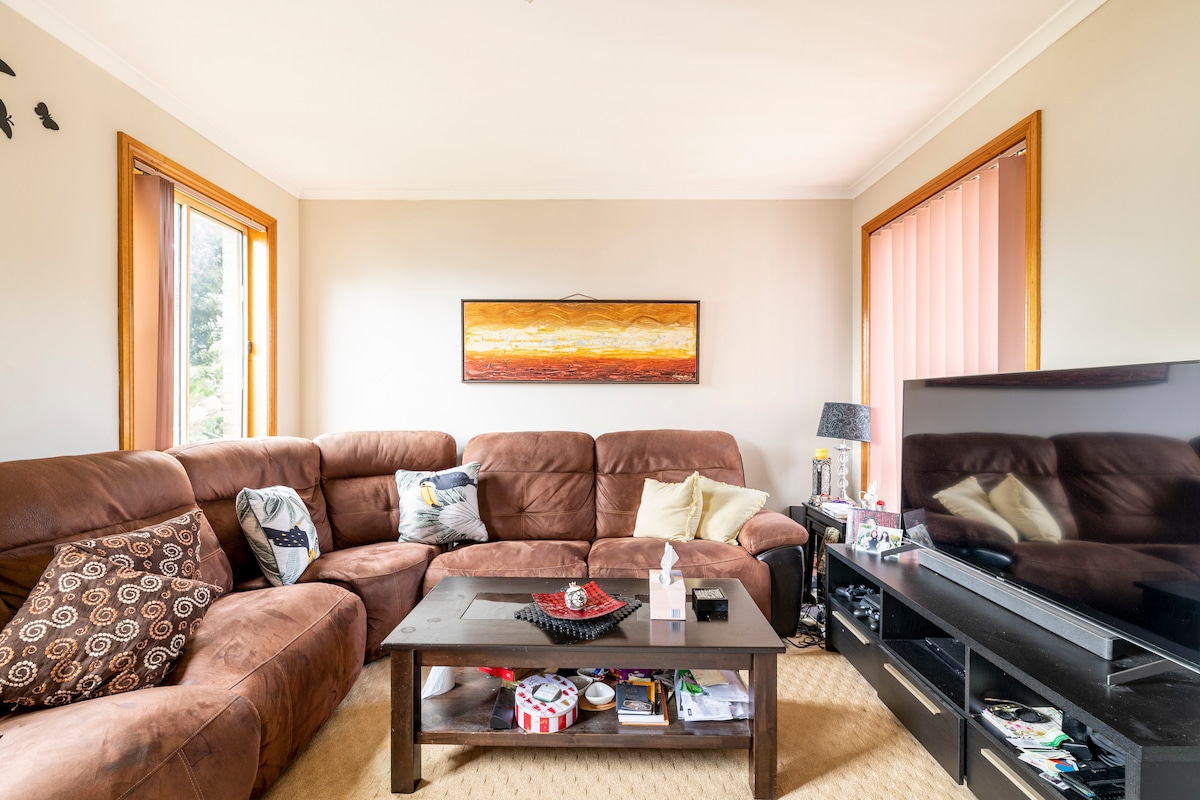 Alójate en una habitación privada con tu propio baño, convenientemente ubicada a poca distancia a pie de las tiendas de comestibles Woolworths, el centro comercial Westfield Plenty Valley, la estación de tren de South Morang, una bonita cafetería de esquina, McDonald's, KFC y mucho más. Puedes ver canguros en la reserva cercana. Tendrás acceso a una cocina compartida solo conmigo. Hay aparcamiento gratuito limitado en la calle en la parte delantera. Disfruto mucho de ser hospitalario y estoy deseando recibirte.