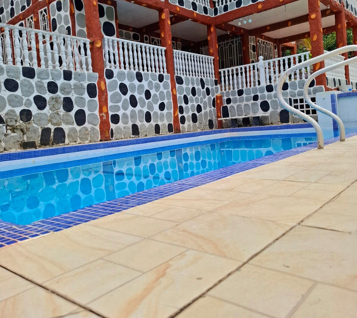 Acogedora casa quinta en el corazón de Melgar, a solo 5 minutos caminando de discotecas, restaurantes y sitios turísticos. Ofrecemos 6 cabañas equipadas con cocina, baño y TV. Disfruta de piscina compartida, zona de asados, juegos tradicionales, parqueadero, mini tienda y venta de licores. Cerca de Piscilago y Ciudad Rectilia. Ideal para parejas, familias y amigos. Un espacio tranquilo y lleno de buena energía. ¡Te esperamos!